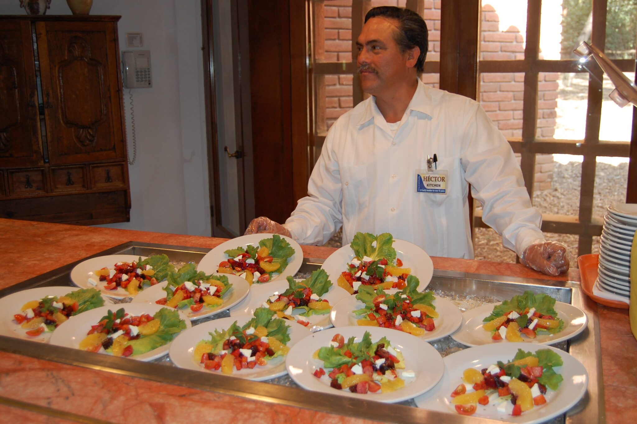 When I hear the dinner bell calling us to the Mexican inspired dining hall, my mind rushes back to being called to dinner at camp, gathering with my friends, discussing what we did that day. It’s the same here although the mostly vegetarian fare is a bit different from the camp grub we complained about in my pre teen years, the feeling of gathering with a convivial group feels the same.