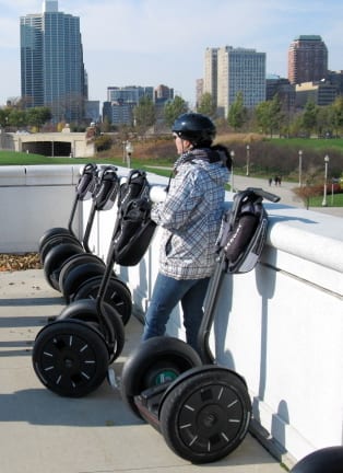I discovered a wonderful new way to see the sights of Chicago recently –gliding about on on a Segway. Chicago, situated at the southwest end of Lake Michigan, has a lot to offer in the “oh my gosh, what a view” department. The tall glass skyscrapers, many in architectural textbooks as first of their kind, the gorgeous expanse of Lake Michigan with massive public parks, gardens, bike paths, and meandering walkways is very cool.