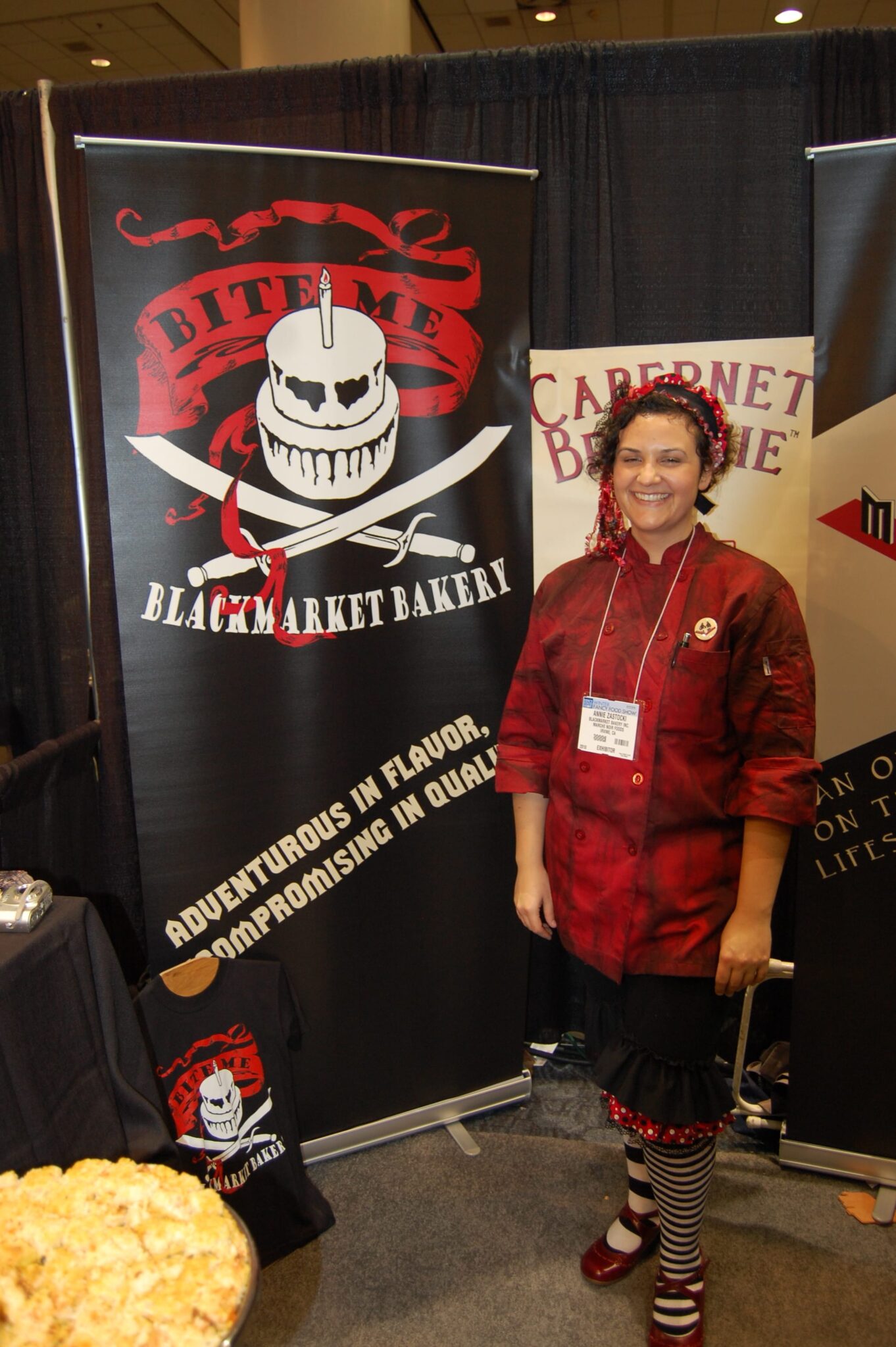 And how about this gal? She’s promoting crackers made from wine skins from Blackmarket Bakery.