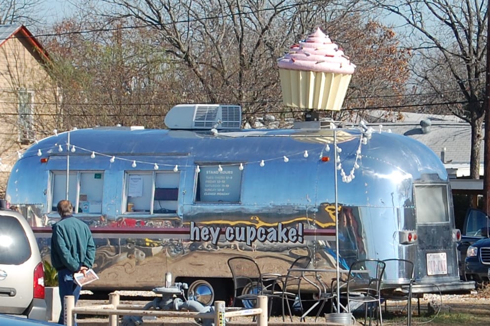 We were tempted…..and who wouldn’t be? Have you ever bought a cupcake at an Air Stream? These shiny blasts from the past are all over town, reinvented as food carts. Made me smile.
