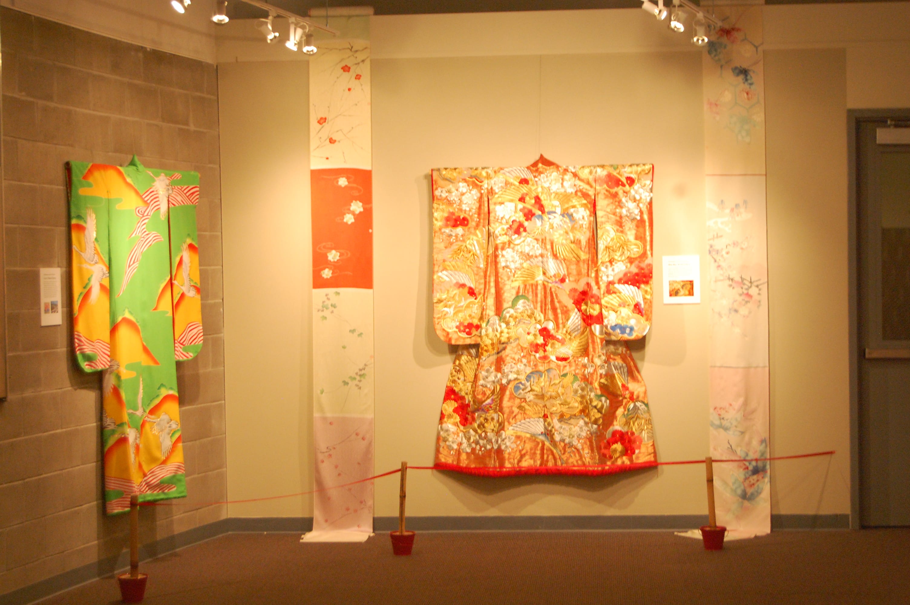 The kimonos on exhibit are from the collection of Etta Hesselink, who lived in Japan for twenty years and became fascinated with the traditional Japanese garb when a Japanese friend introduced her to their intricate construction.