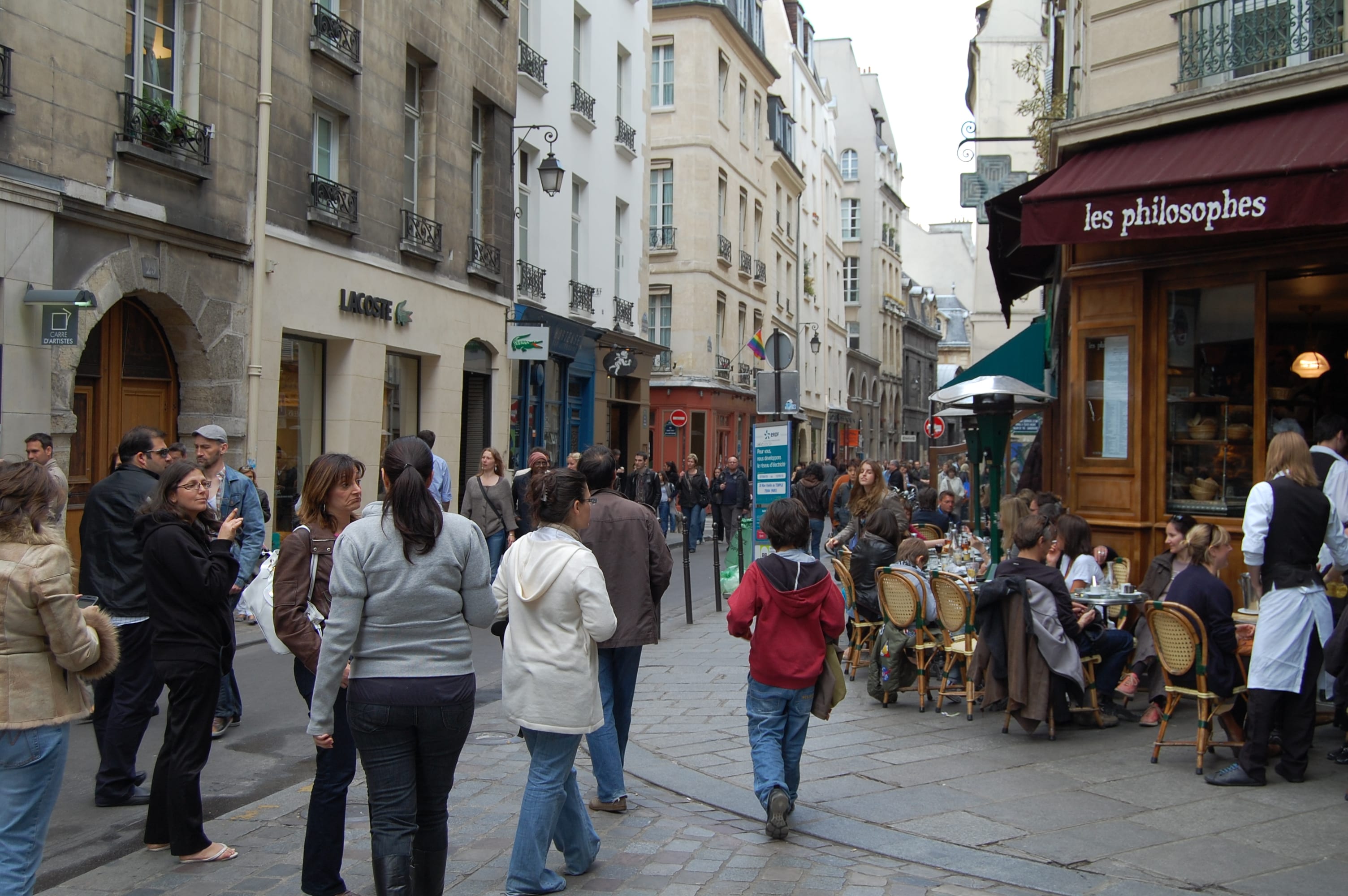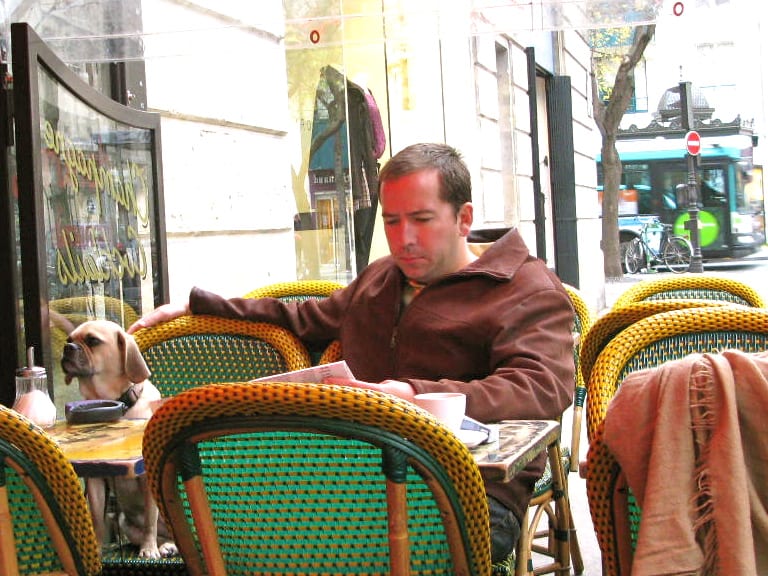 Aug 25, 2013[…] 4. Did you know that you will pay more if you sit at an outside cafe than if you get a drink standing a bar? You are paying for “real estate”or the opportunity to sit and savor your coffee or glass of wine without being rushed. Never order at the bar and then take it to the table. Do spring for the more expensive option. You’ll never know what you will see…… like this fellow who stopped right in front of us at a cafe in the Marais. […]