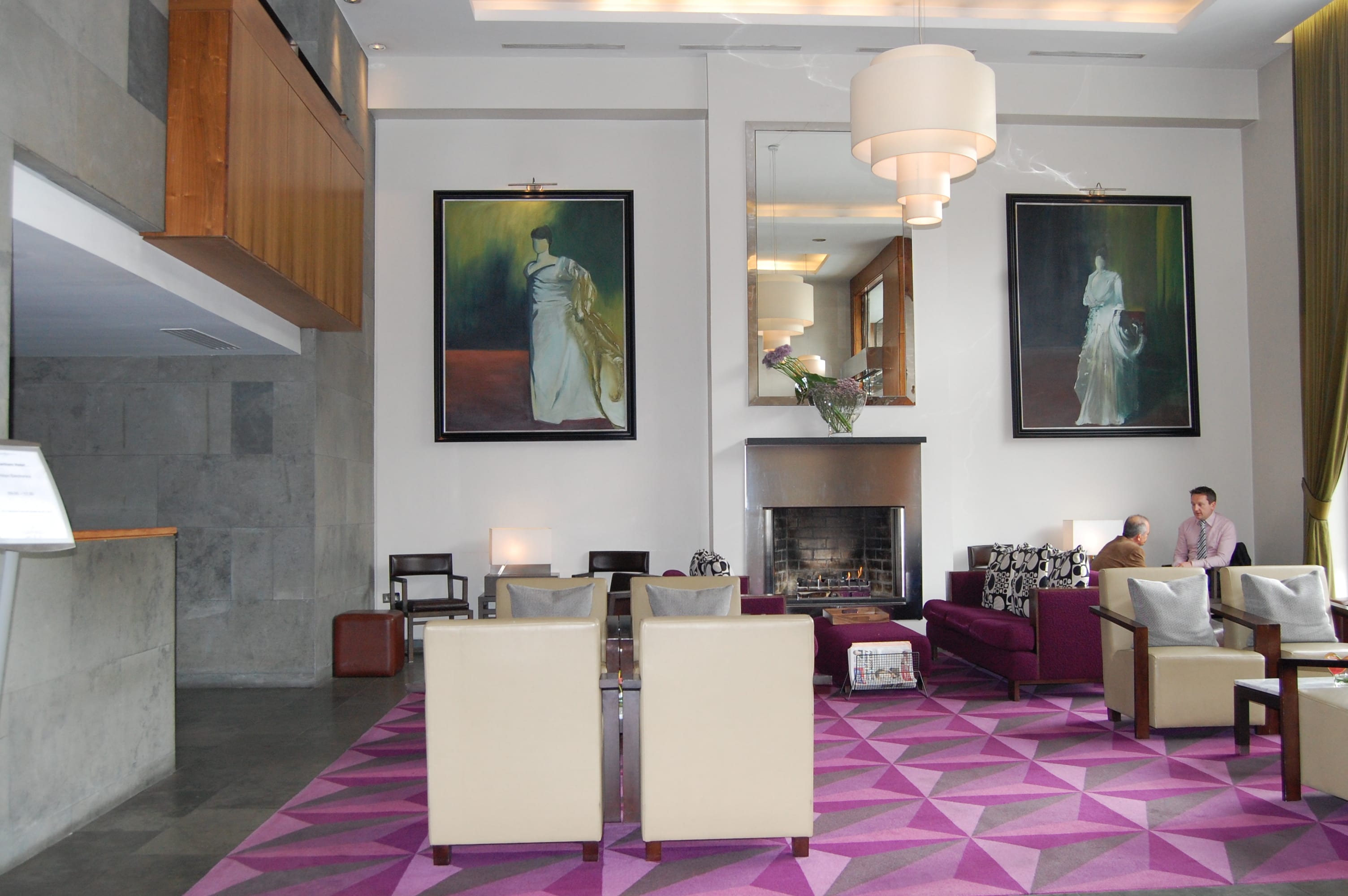 The colors of the interior design of the hotel make me think of the colors of the city itself—grey, green and splashes of purple. This echoes the leaden gray skies of a country where rain is the normal and the vibrant spots of purple blooms are surrounded by the luscious greens in the nearby parks.
