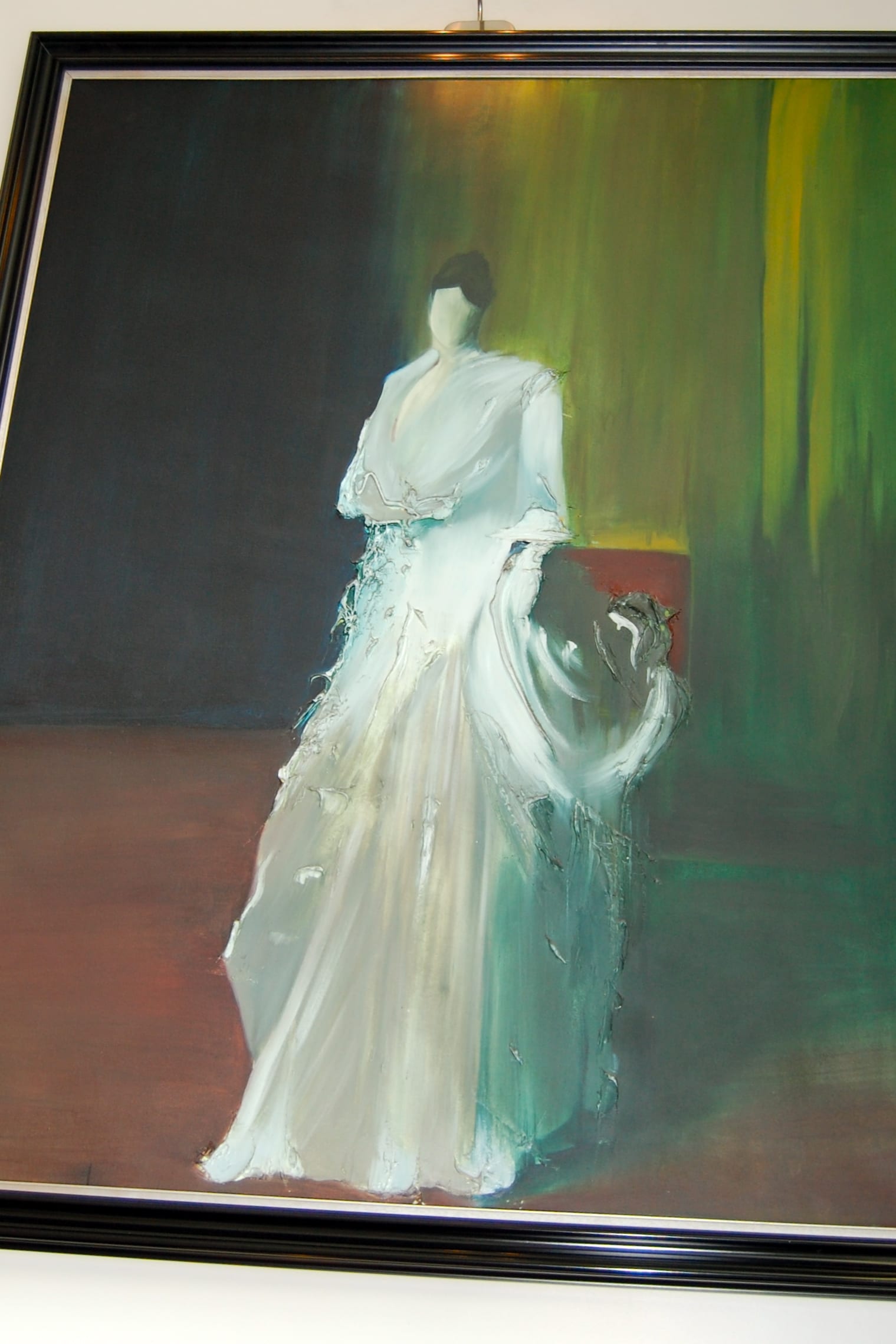 My first response is that they are a spoof on the ever-present fussy, formal and often pretentious portraits of gentry typical in grand homes of British Isles. Then I mused about what the faceless ladies might be saying about the role of women in modern society.