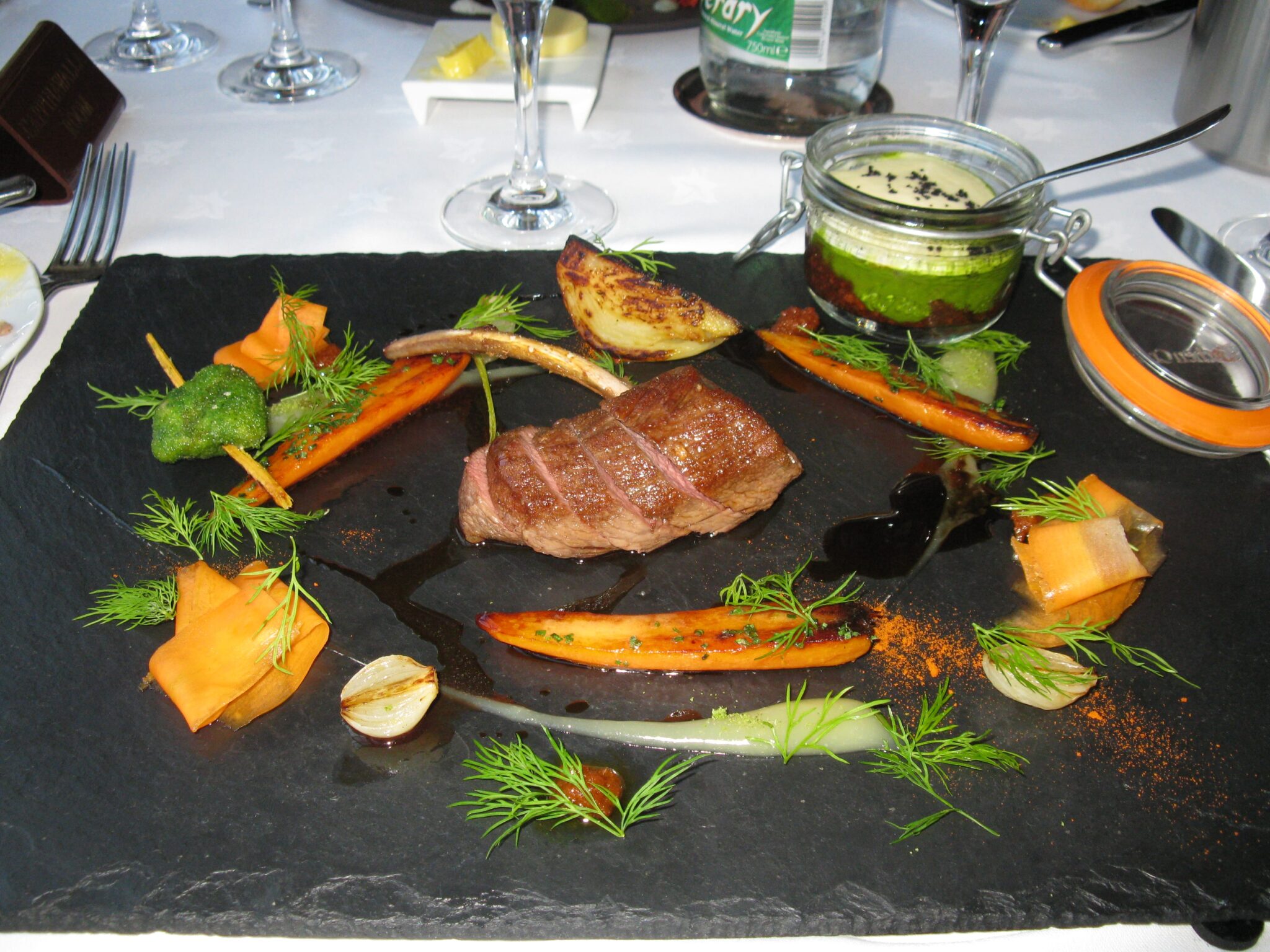 No overcooked Sheppard’s Pie or mounds of mushy vegetables here. We will rave about he beetroot macaroons with fois gras appetizer, the lamb with carrots prepared four ways, the locally caught fish for years. Yes, we took photos. Couldn’t help it.