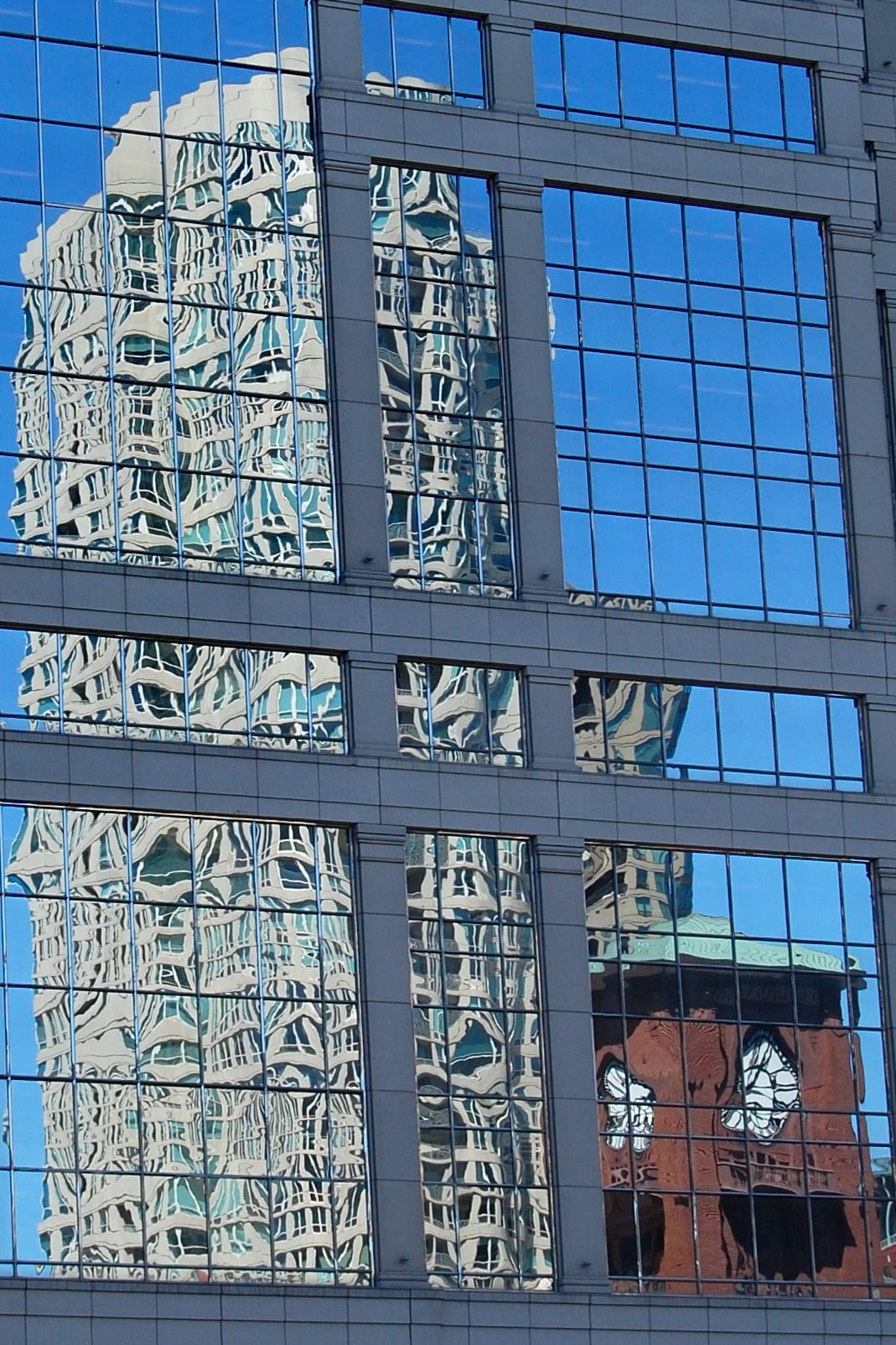 But you don’t have to go on the River to see interesting reflections. Everywhere you look in the Windy City you can see vivid and artistic reflections of the neighboring buildings. The glorious thing is that as the light and your position changes, so do the reflections.