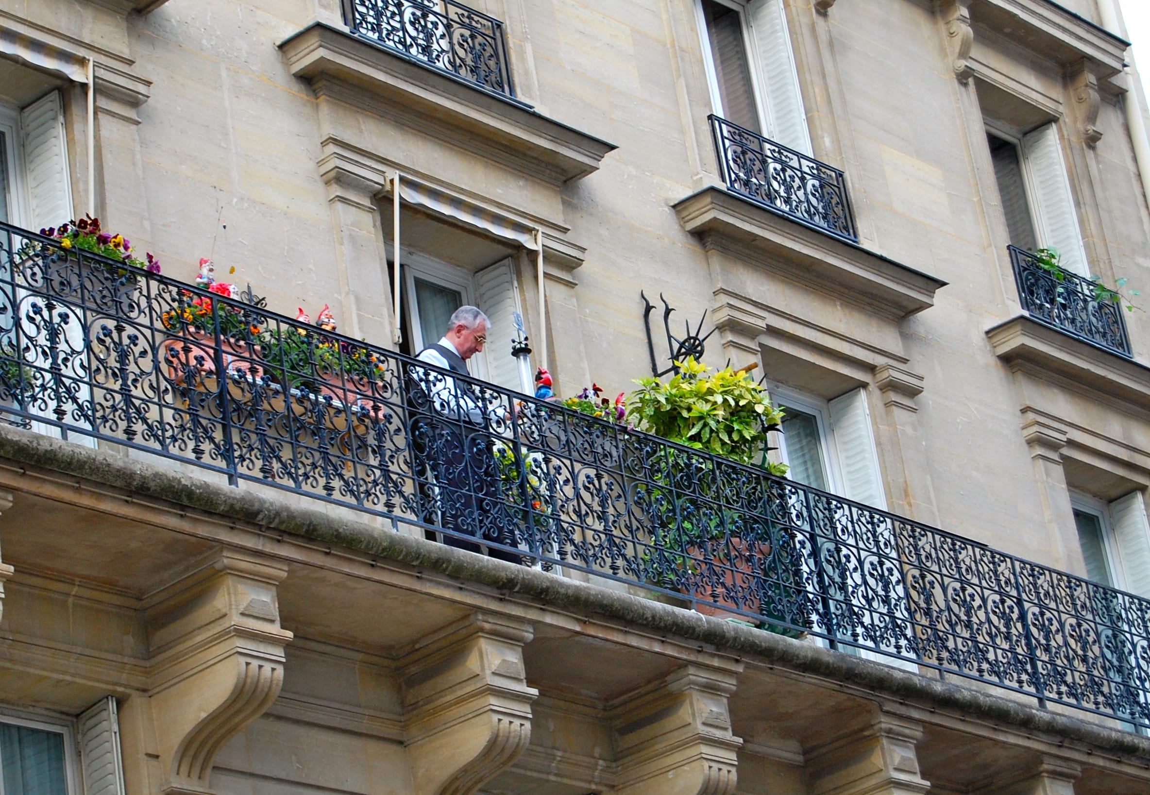 Families with children, old folks grasping their baguettes and young people looking for friends to chat with. It’s fun to see their get ups. And above it all, a resident waters his plants on the balcony above the bakery.
