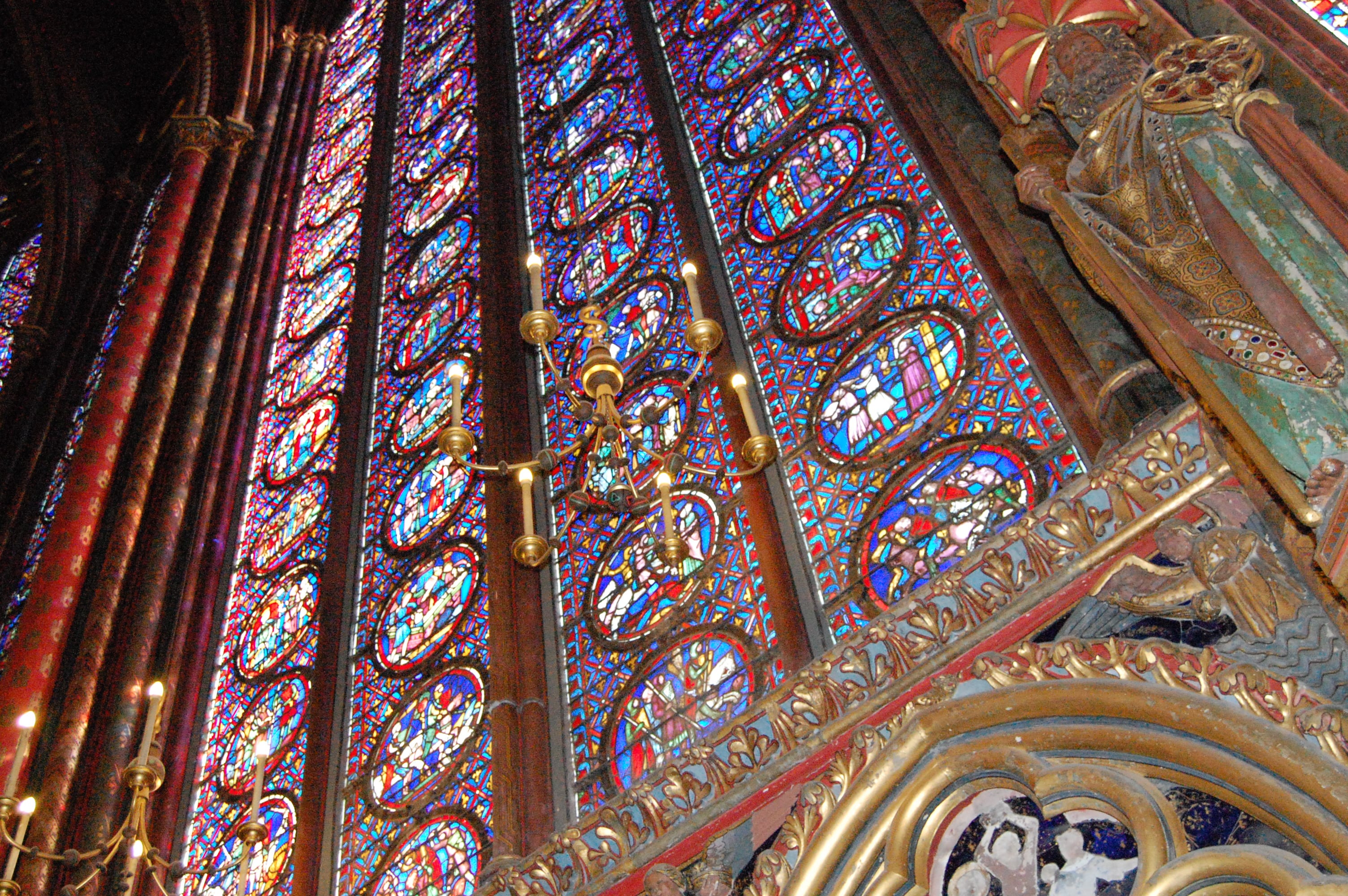 The structure is situated in the heart of Paris on the Ile de la Cite’, the original center of Paris. Now it is surrounded by buildings only two to three hundred years old. It can easily be over looked by crowds thronging to see the more dominating Notre Dame nearby that was completed on the island almost a century after Sainte Chappelle. But don’t skip this destination. It was an ambitious undertaking when it was built combining the latest in vaulting, balancing and proportions. The stain glass windows are exquisite.