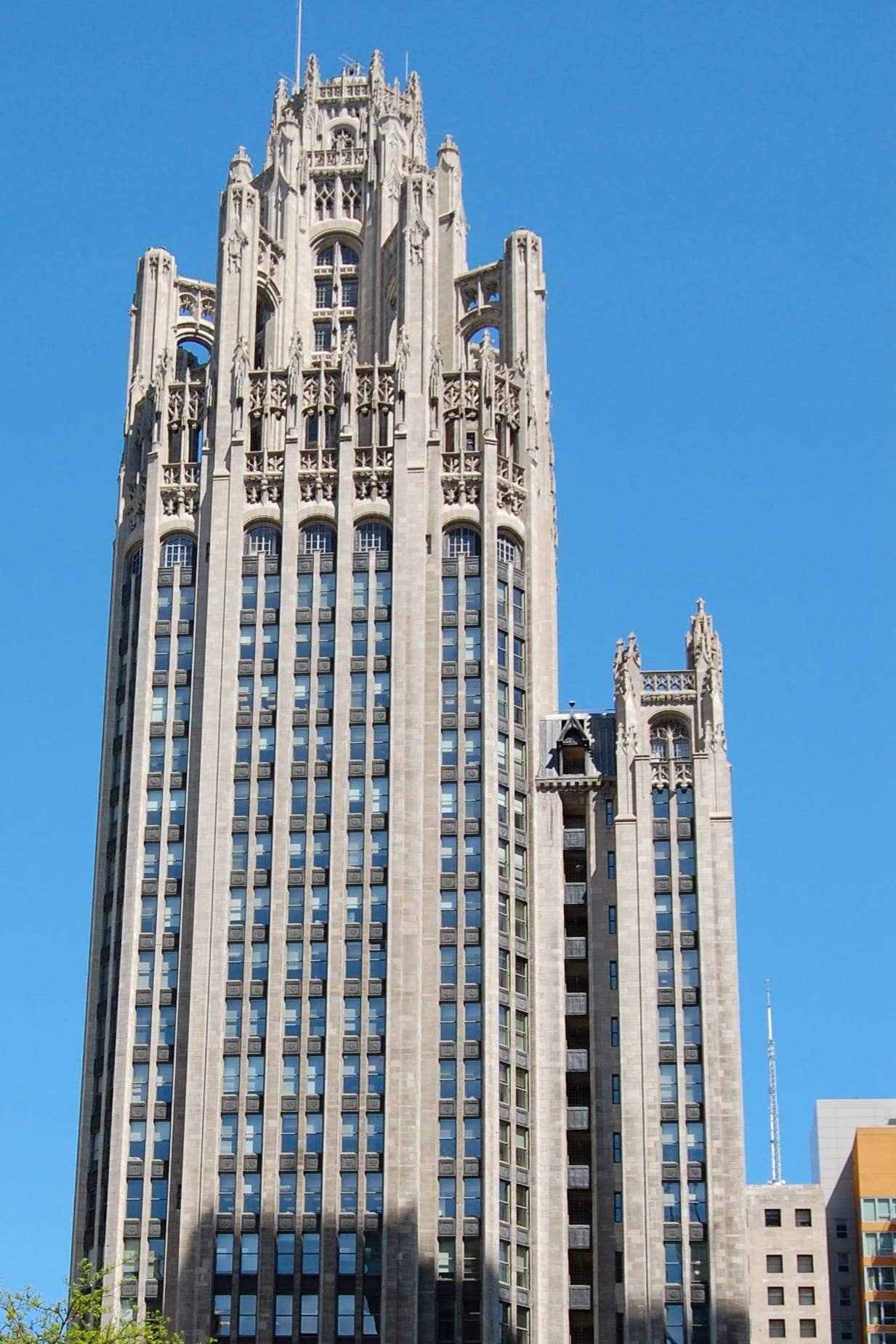 And some buildings are a little weird. For example, the Chicago Tribune building built in 1925 has an Art Deco shaft and a Gothic top. The Gothic part is inspired by a cathedral in France.   Go Figure.