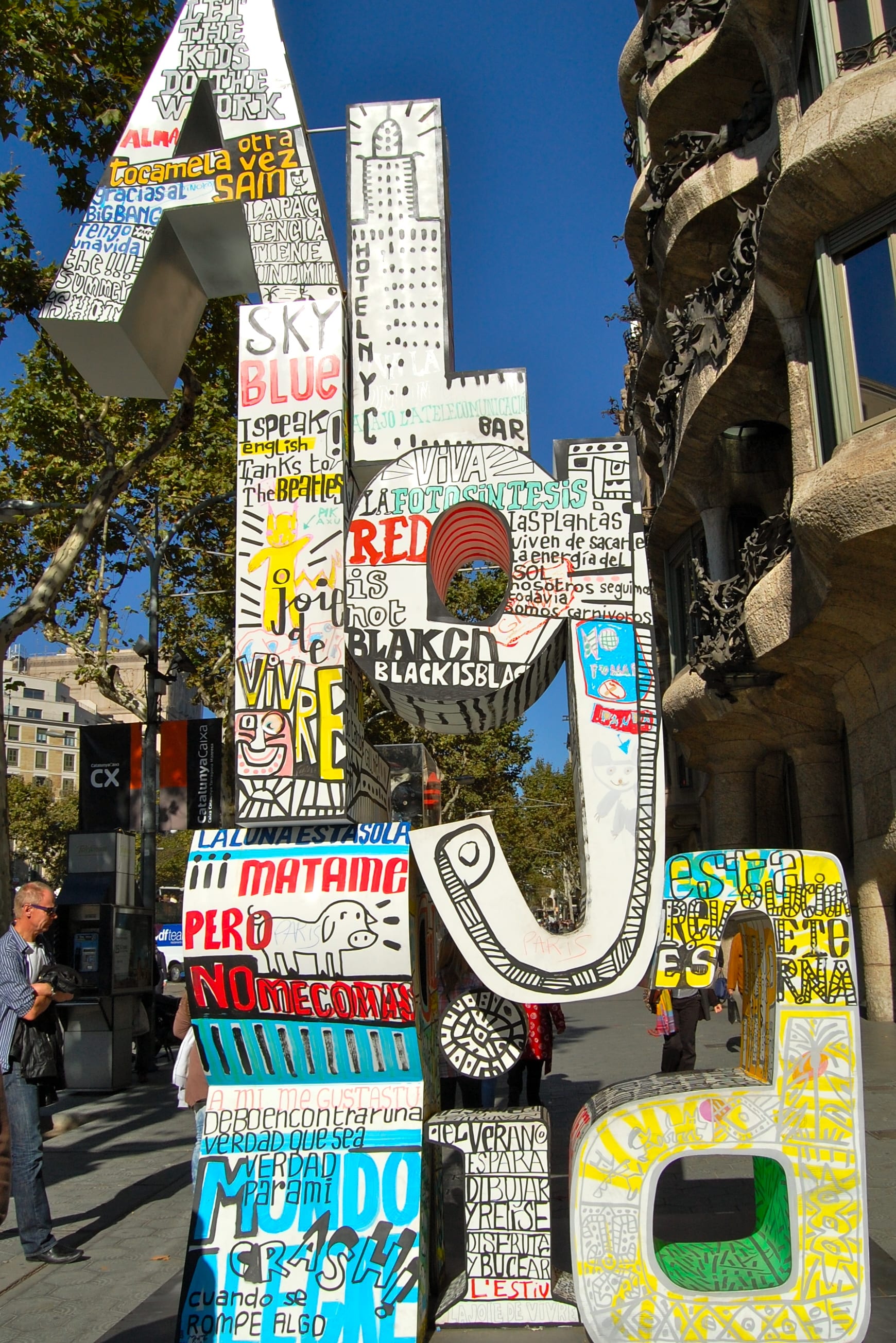 Art is everywhere in Barcelona. On the street. On the buildings. There’s nothing bland and boring about this city. It is easy to maneuver on foot and a joy to look up at the buildings and on the street corners for art, sculpture and a occasional surprise.