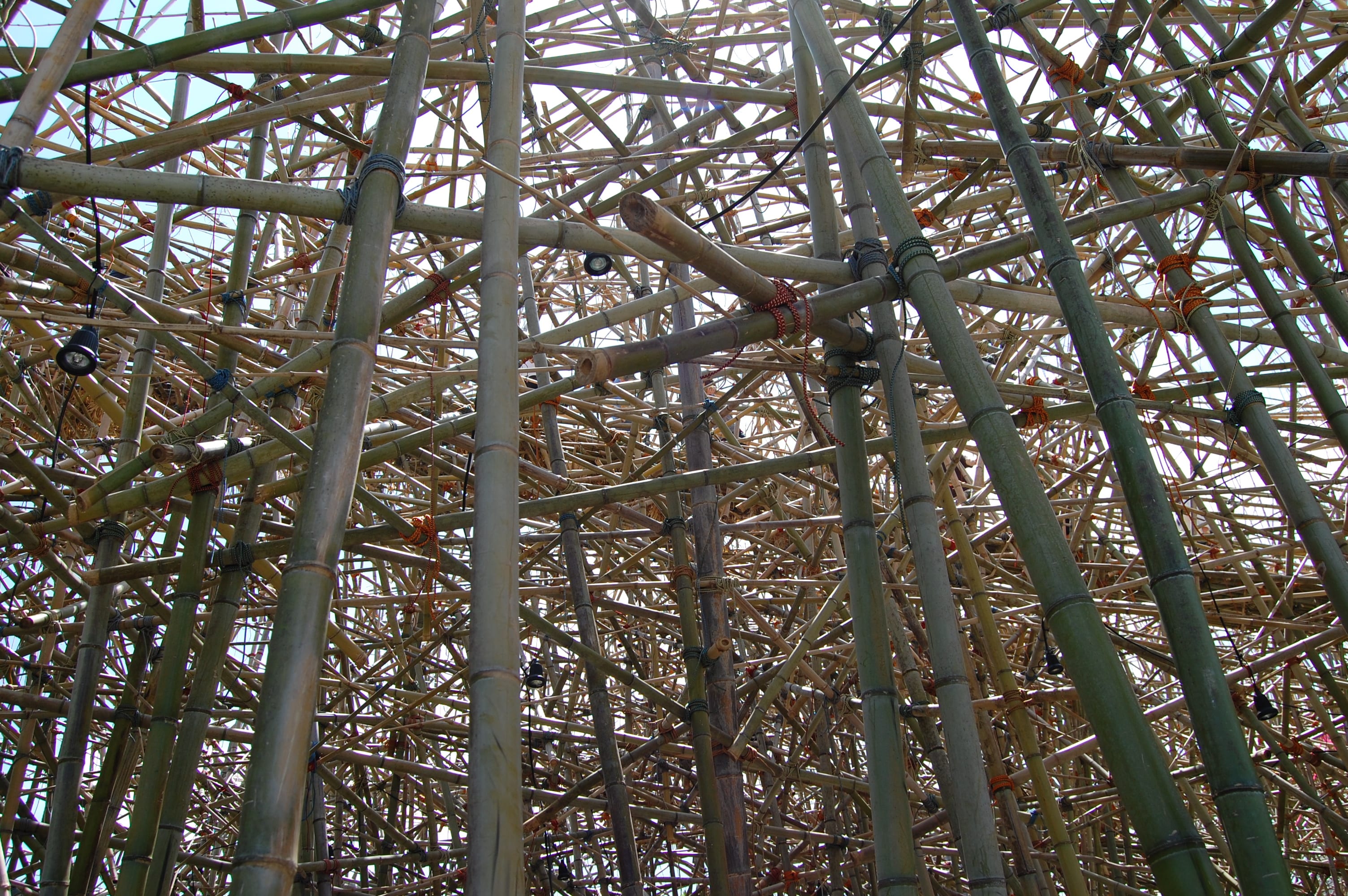 They chose bamboo, according to an article in the New York Times, because it is light yet incredibly strong and can withstand all kinds of weather. And like the work itself, it constantly changes, its colors deepening and fading depending upon the light and weather.