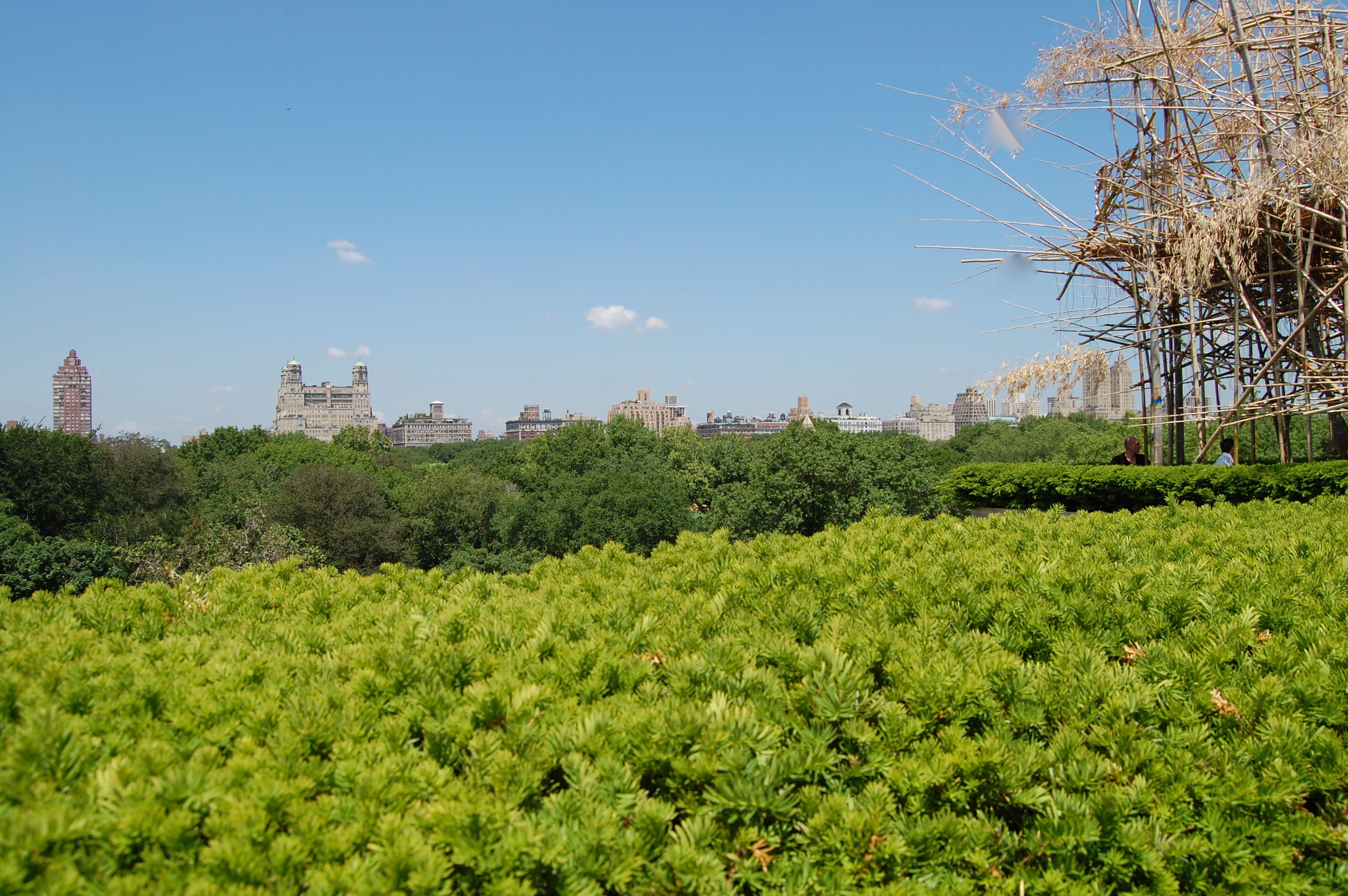 Bordering on bizarre, the Big Bambu is an installation of thousands of pieces of bamboo lashed together to form a maze of sorts, a forest, a jungle, a stairwell and bridge on the Iris and B. Gerald Cantor Roof Garden. I had gone to the roof because it was a spectacularly sunny day in the Big Apple and someone had told me it was possible to have a bite to eat while enjoying a 360-degree view of the area around the museum. Since the museum is situated on the edge of Central park I figured I’d like it.