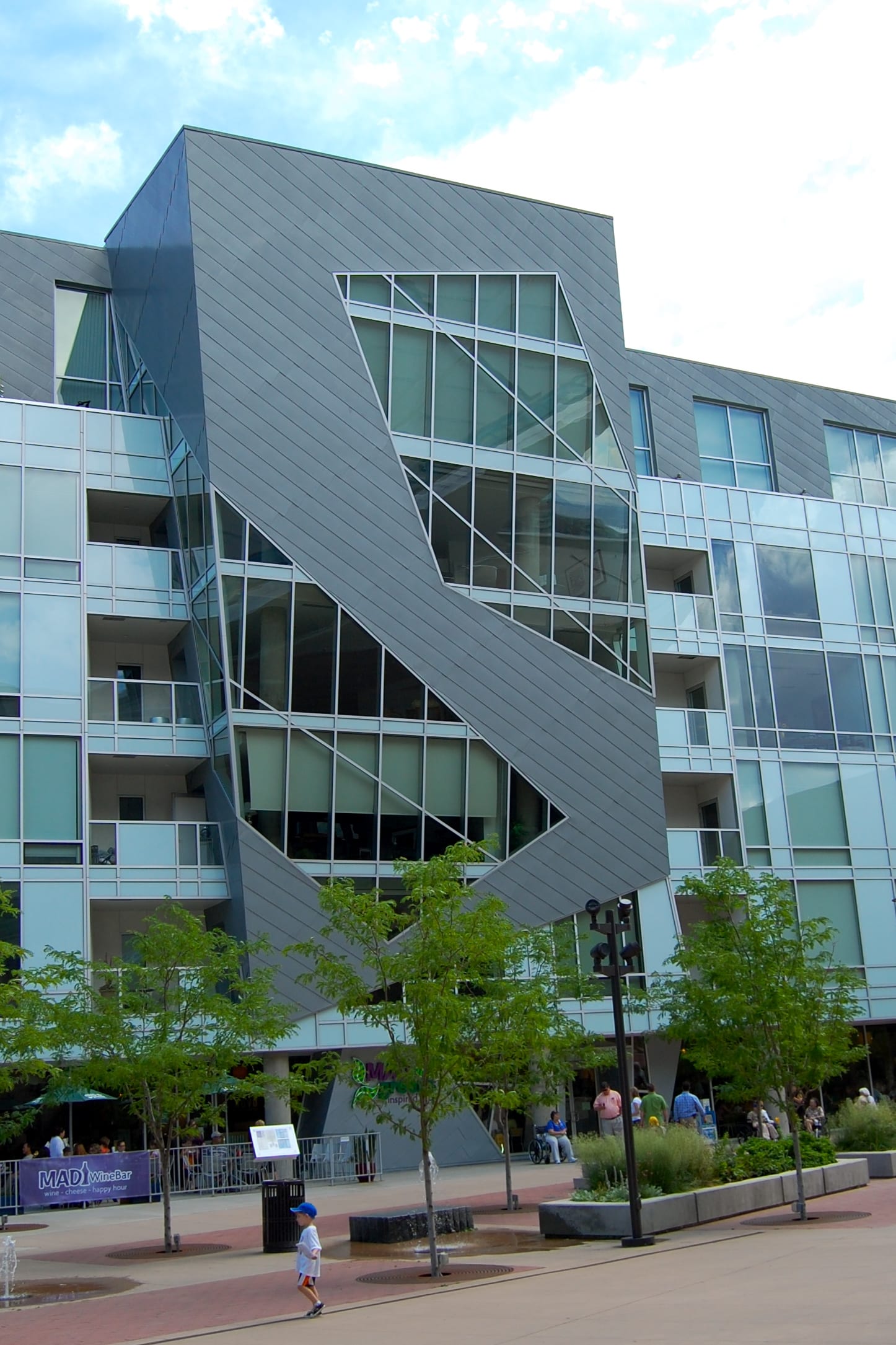 Directly across from the museum are condos that have a “me- too- but-not-quite” feeling. The exterior zigzags and attempts to soar like the new DAM structure. Emphasis on “attempts.”