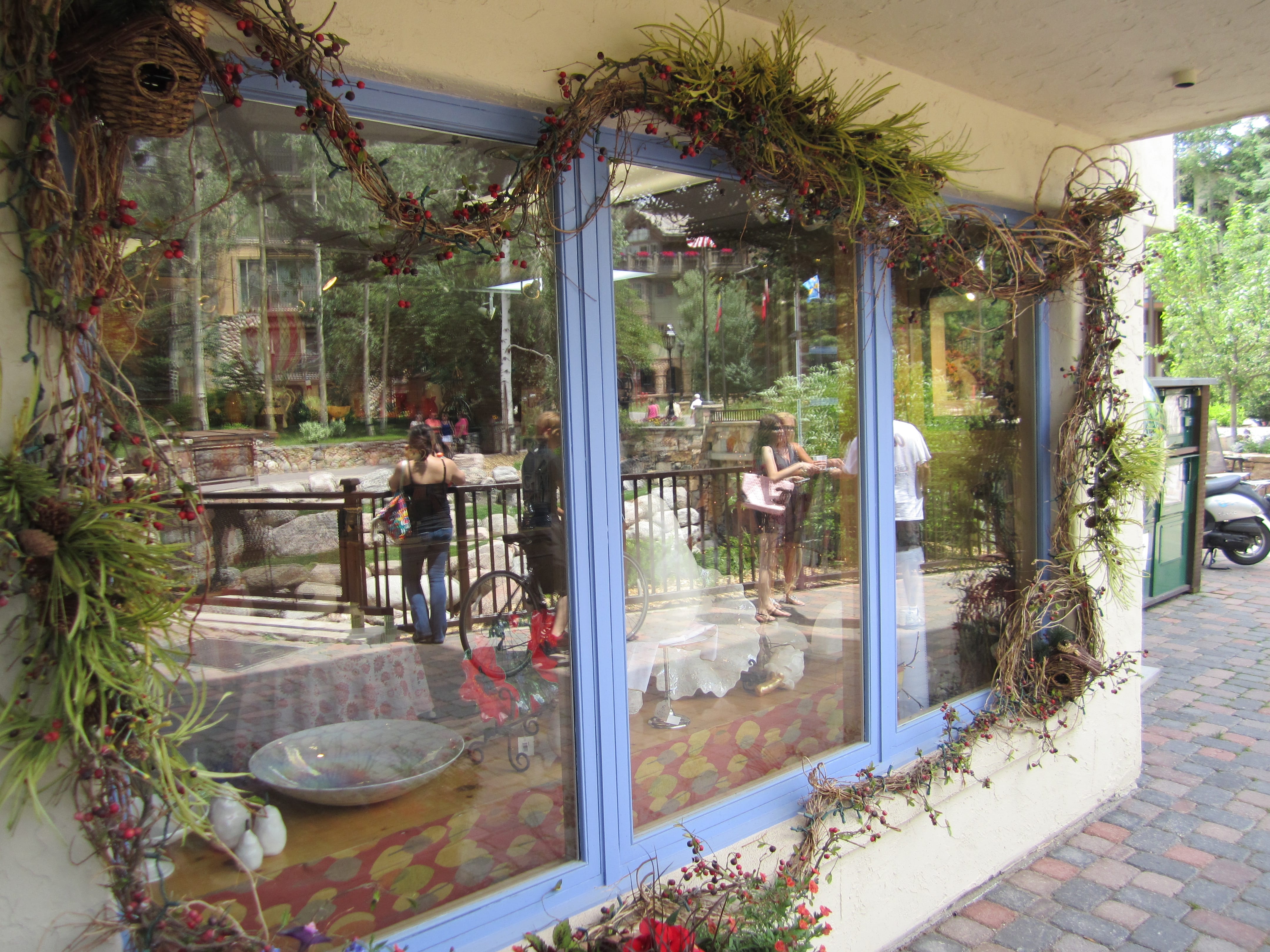 A long weekend in Colorado in July left me with some pretty strong visual impressions. Having spent time in Colorado during ski season I am accustomed but always in awe of the dramatic scenery and memorable terrain of this Rocky Mountain state. Instead of snow, rainbows and sunsets highlighted the trip. Summer has its own charms to enjoy. Possibly because the west has always had a “can do” attitude, rough and rugged, the spirit is about being free to be expressive, which is what I enjoyed about this storefront in Vail.
