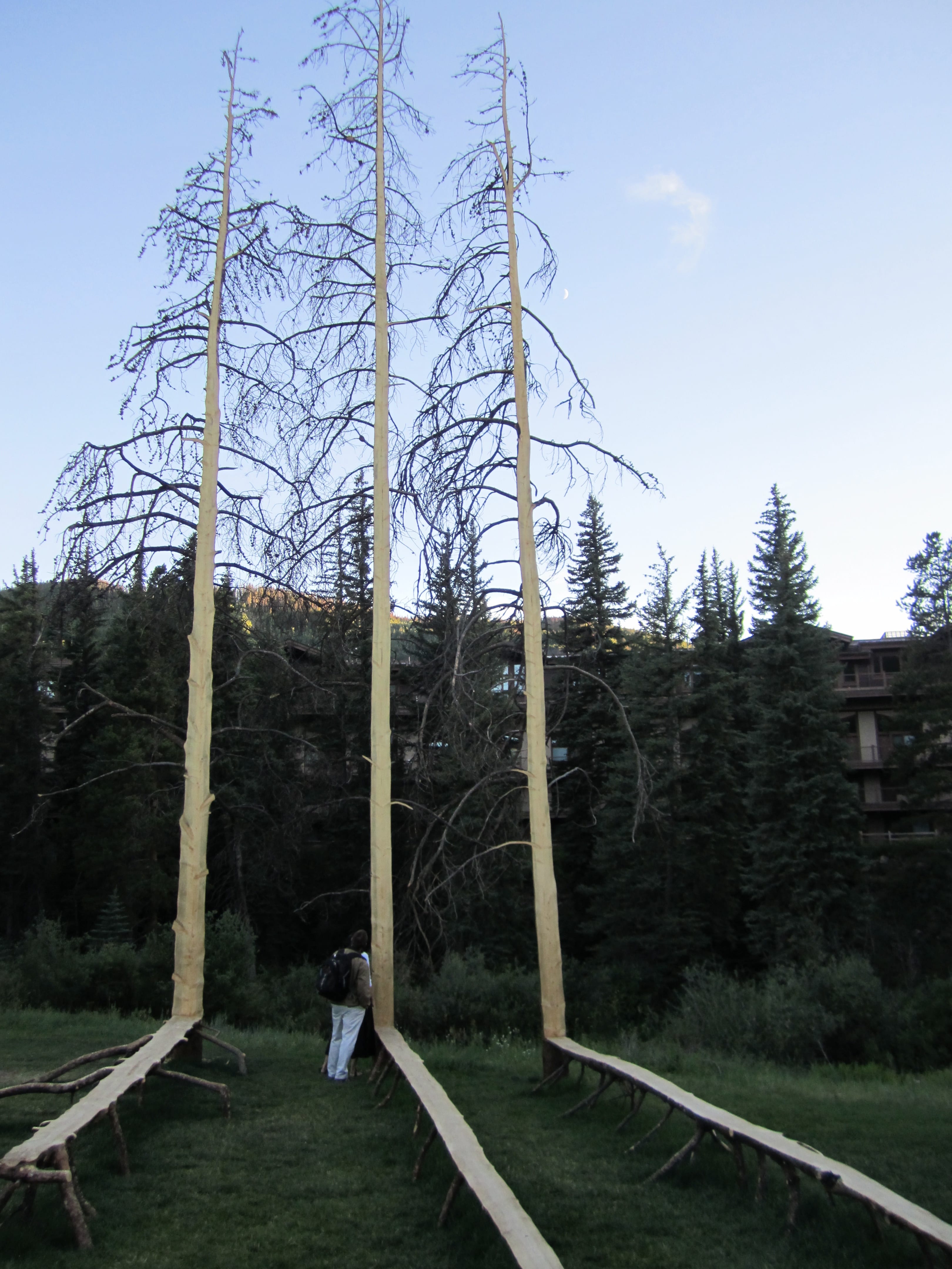 Or the piece on the great lawn near the performance hall in Vail that makes me think of Matisse’s famous Dance. And then I could not help but think of my friend who collects pig images when I saw this at a garden store. Some enterprising person even turned the trees demolished by the beetles into art. Something for everyone, right?