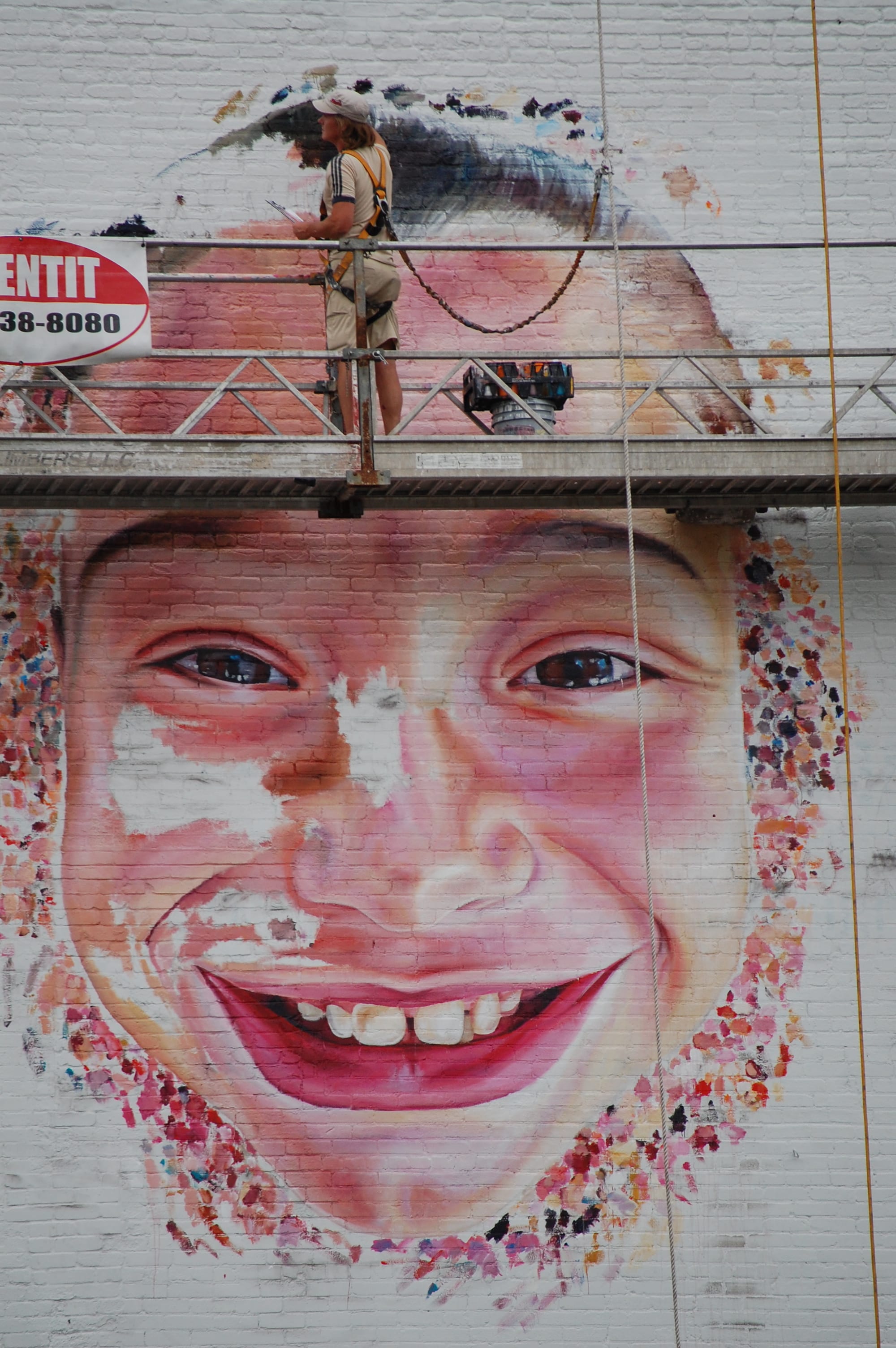 Watching the progress of the giant mural on the side of the Kendall College of Art and Design wall is a special treat. I find myself drawn to the sidewalk across the street, camera in hand to capture the transformation of an urban wall. Enjoy.