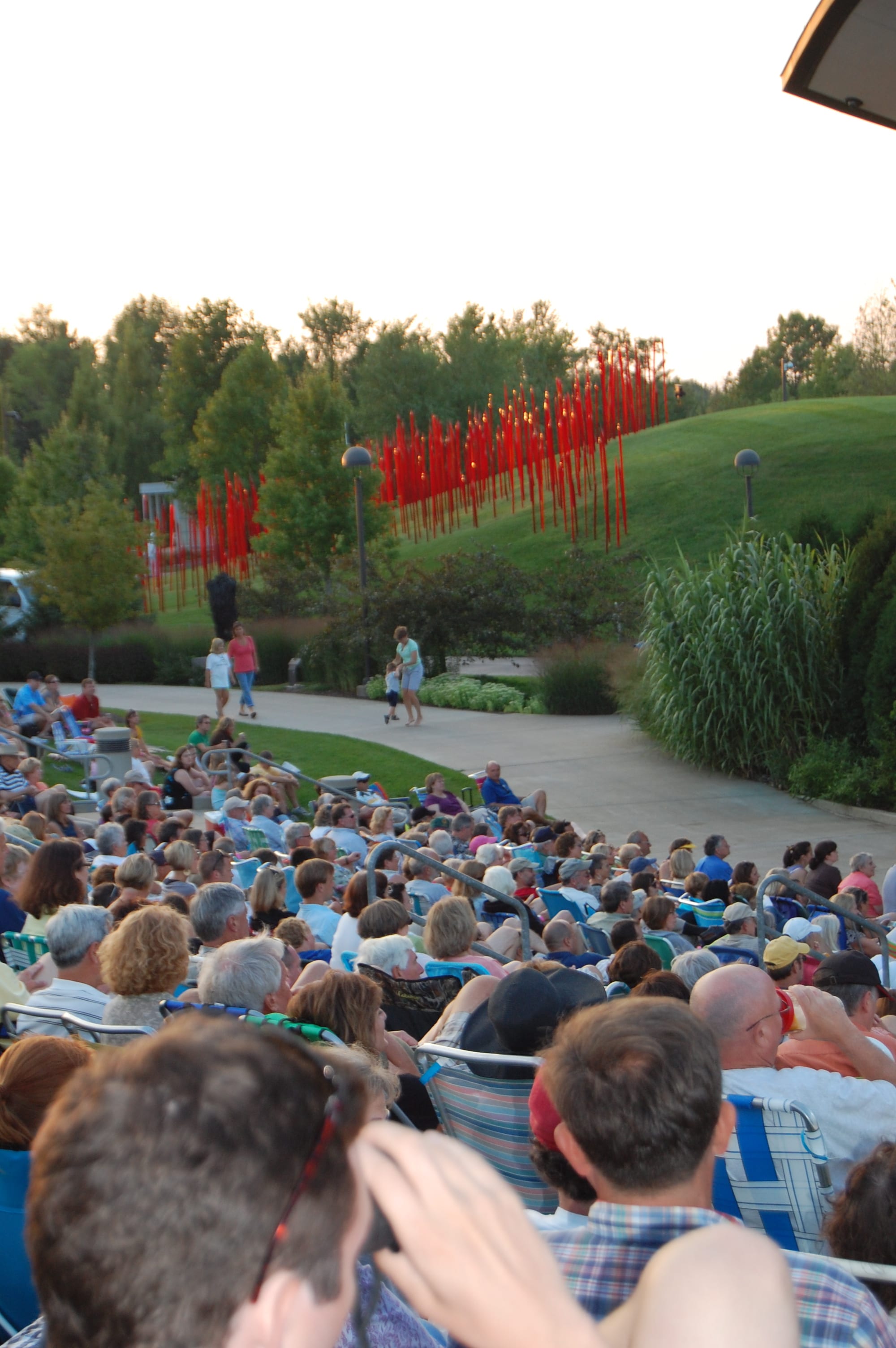 I also had a late day experience that unfortunately I couldn’t capture very well on my camera. I attended a concert at the Gardens and while we were waiting for the Celtic Fiddler to begin enchanting us all, the tips of the red cylinder glass pieces that march up a hill in clear view of our seats began to glow.
