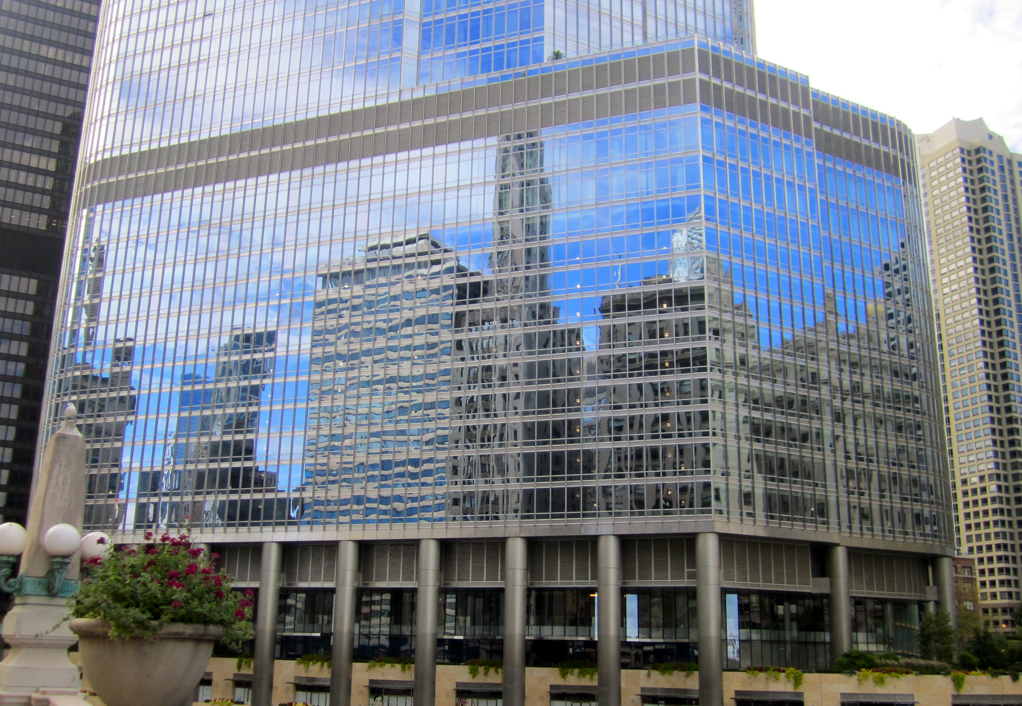 Walking along the Chicago River, enjoying the reflections in the buildings.