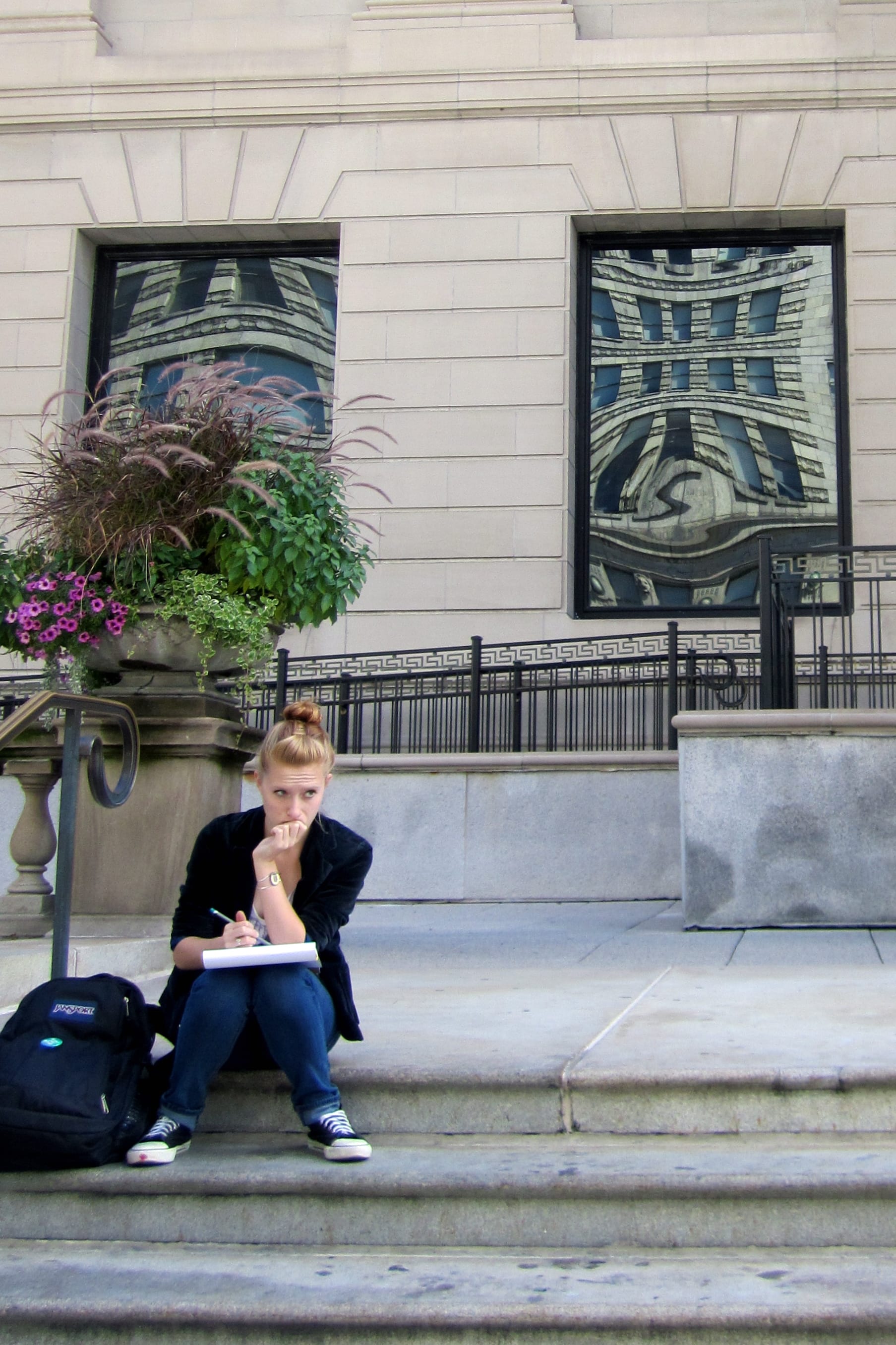 I’m such a sucker for “reflections.” These are all images in the windows of the Chicago Institute of Art on Michigan Avenue.