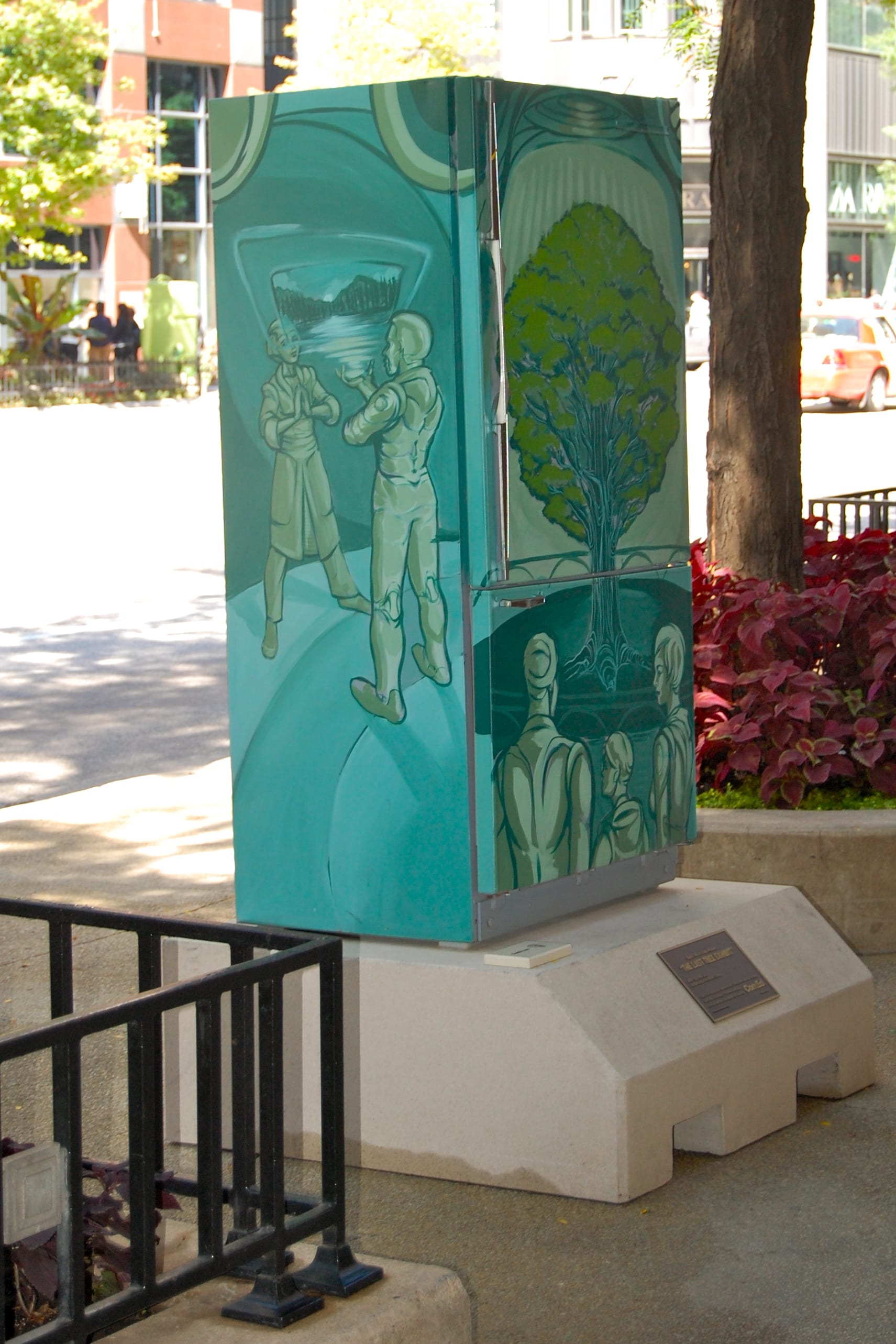 Recently I found myself fascinated with refrigerators. Yep. Michigan Avenue is lined with “repurposed” refrigerators. “Fine Art Fridges” is sponsored by ComEd, designed to raise awareness of the recycling program they offer.