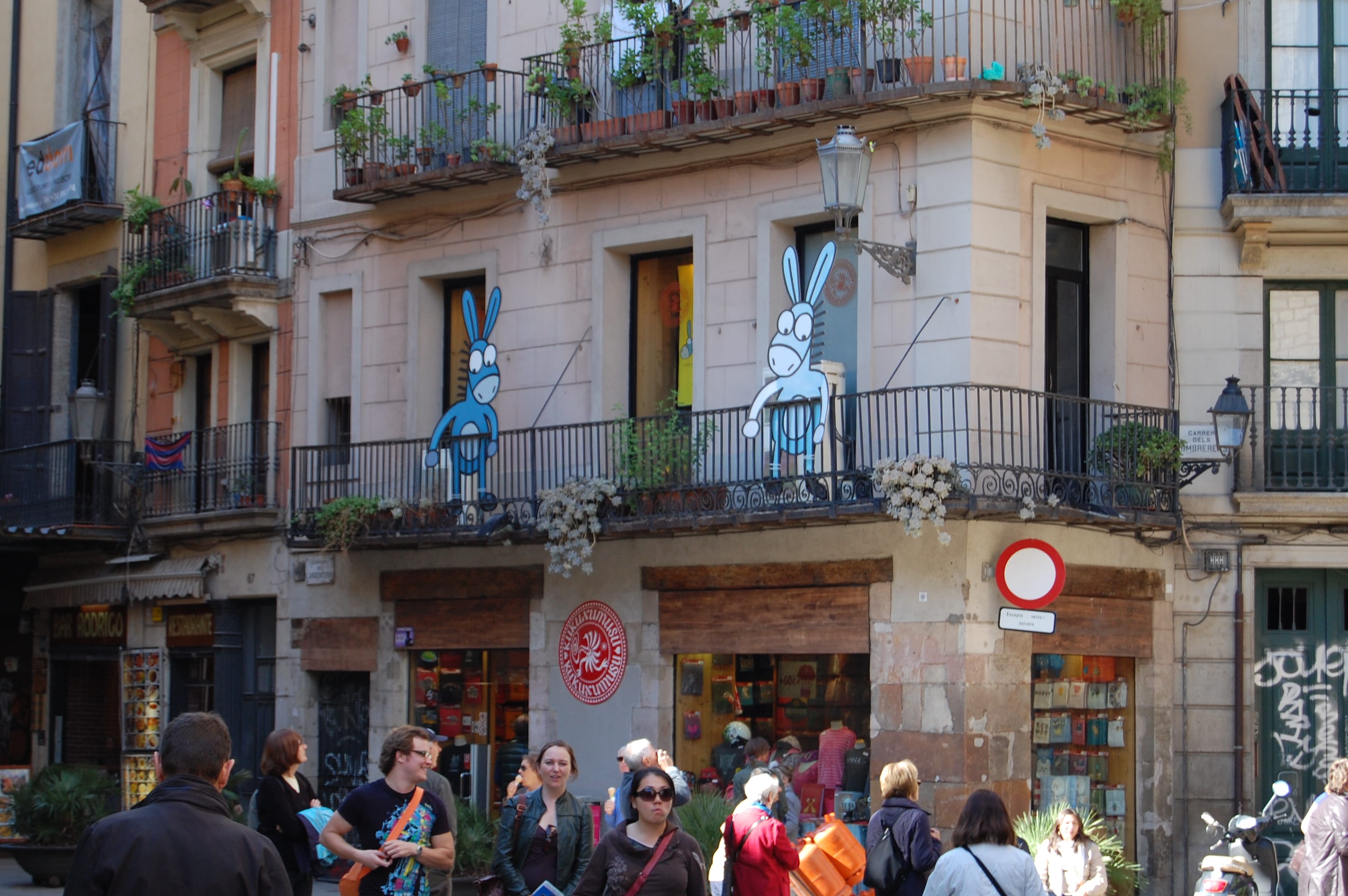 As I make my way around the city I feel an underlying joy of life. Folks line La Rambla, dressed in sometimes hysterical costumes, other times just cute. They earn a few coins posing for photos with tourists. Shops abound with stuff that make me smile and I often look up and see something to chuckle about.
