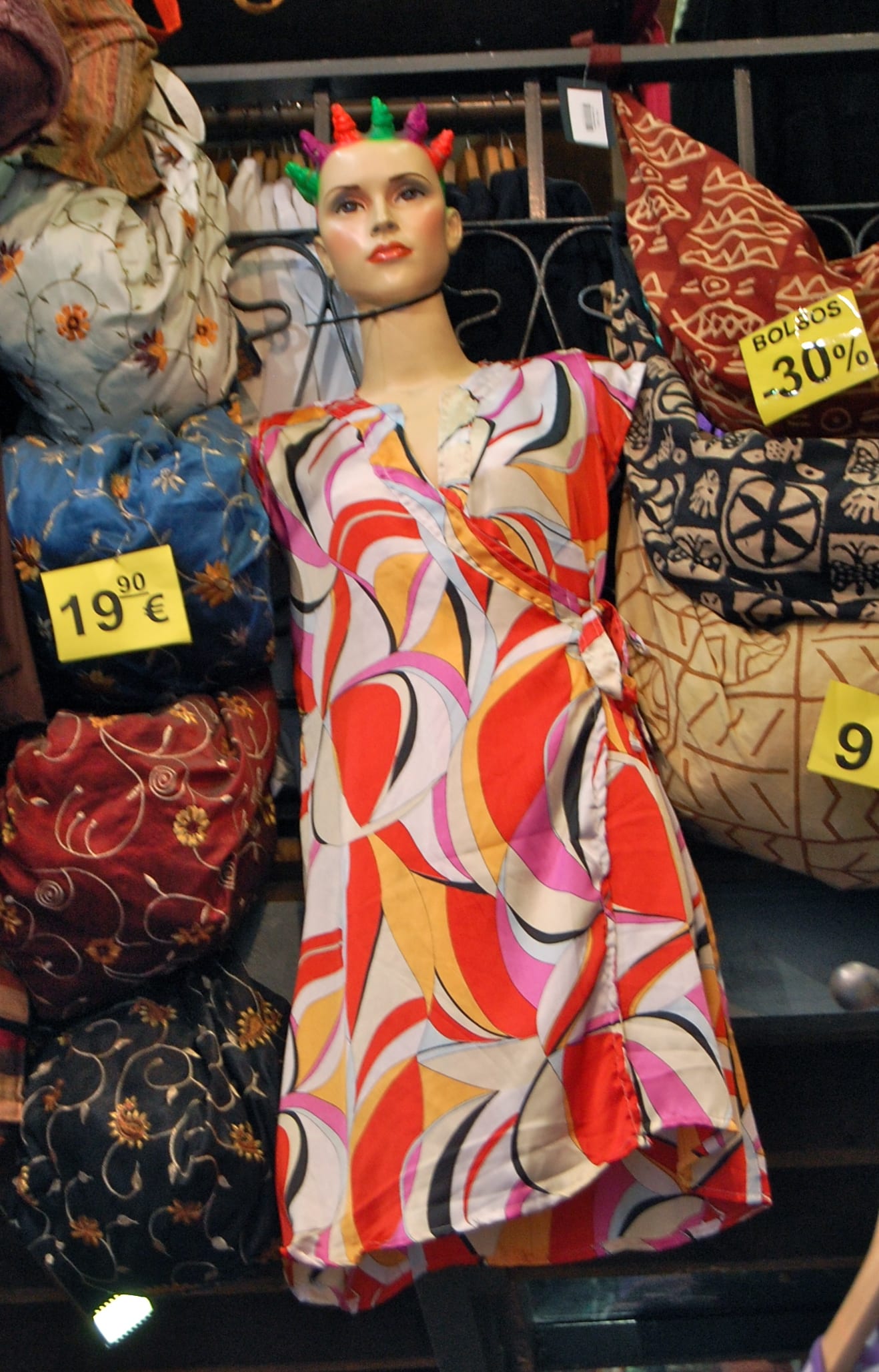 Maybe it is part of the Spanish exuberance for life. Could be left over influence of the Moors, the impact of bright sun and clear sky. Antoni Gaudi certainly has to be a major influence. I saw profusion of color in shops, on people and in the art and architecture. Even the phone company is called Orange.