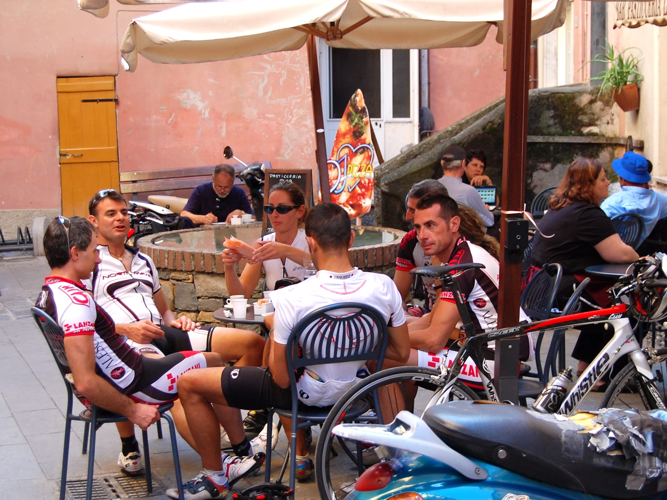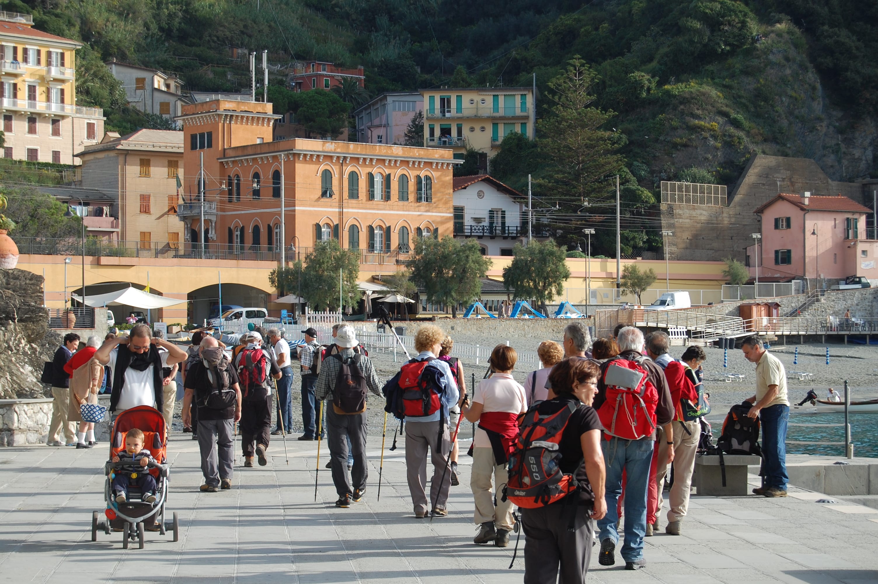 That’s right. Visitors drive to the parking lot outside of Monterossa, the northernmost of the five towns, park and then walk or taxi into the town. From there they either take a ferry, a train or hike a footpath to the other four towns. It’s delightful. No huge tour buses to scare the beJesus out of you. No little ones either.