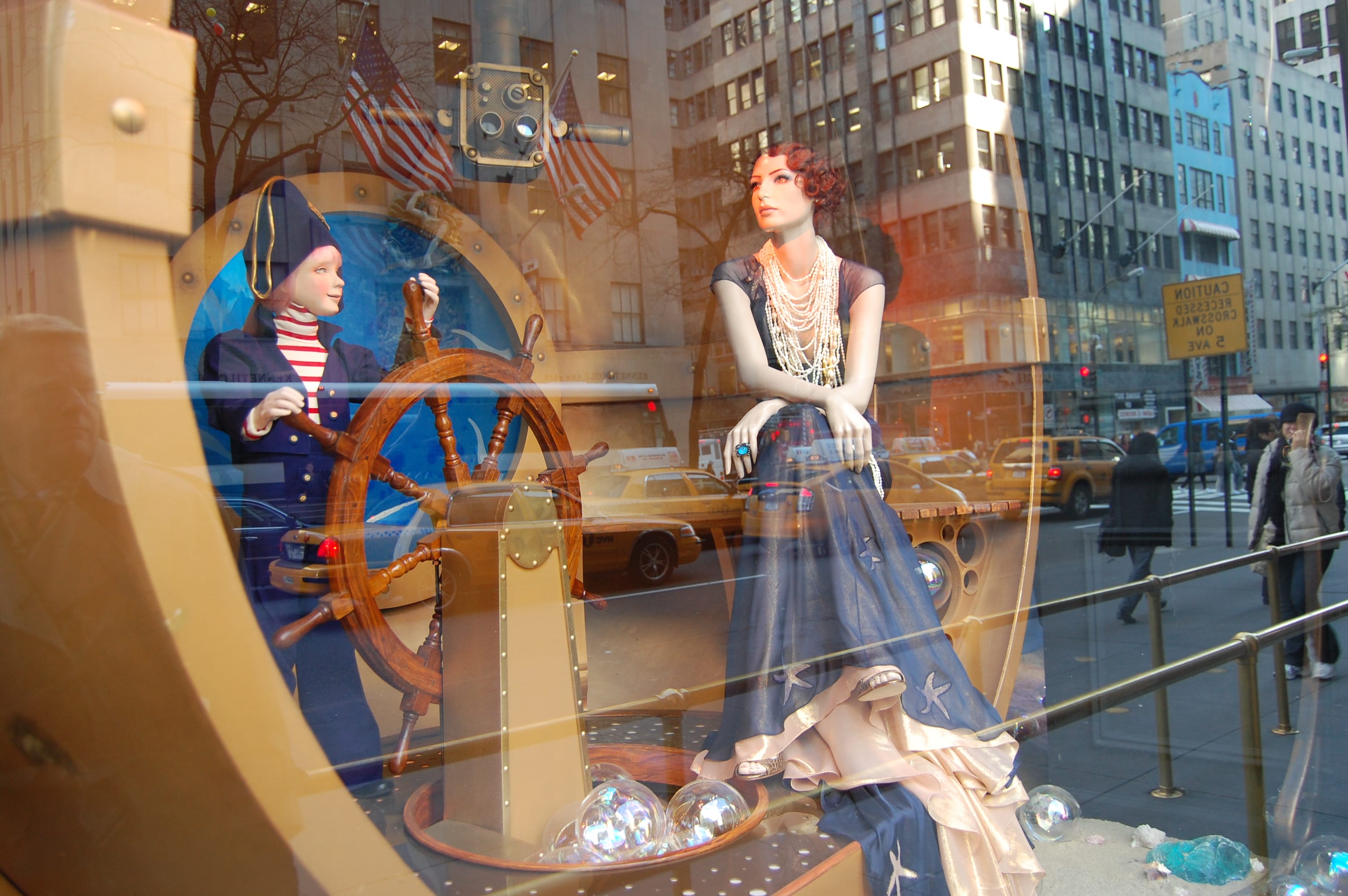 The windows at Saks on Fifth Avenue always draw me for a look. Here you can see the window and the reflection of the street scene. I also love the windows at Bergdorf’s and Barneys. This trip I especially liked the windows of the new Ralph Lauren store on Madison and 72nd Street. Stunning.