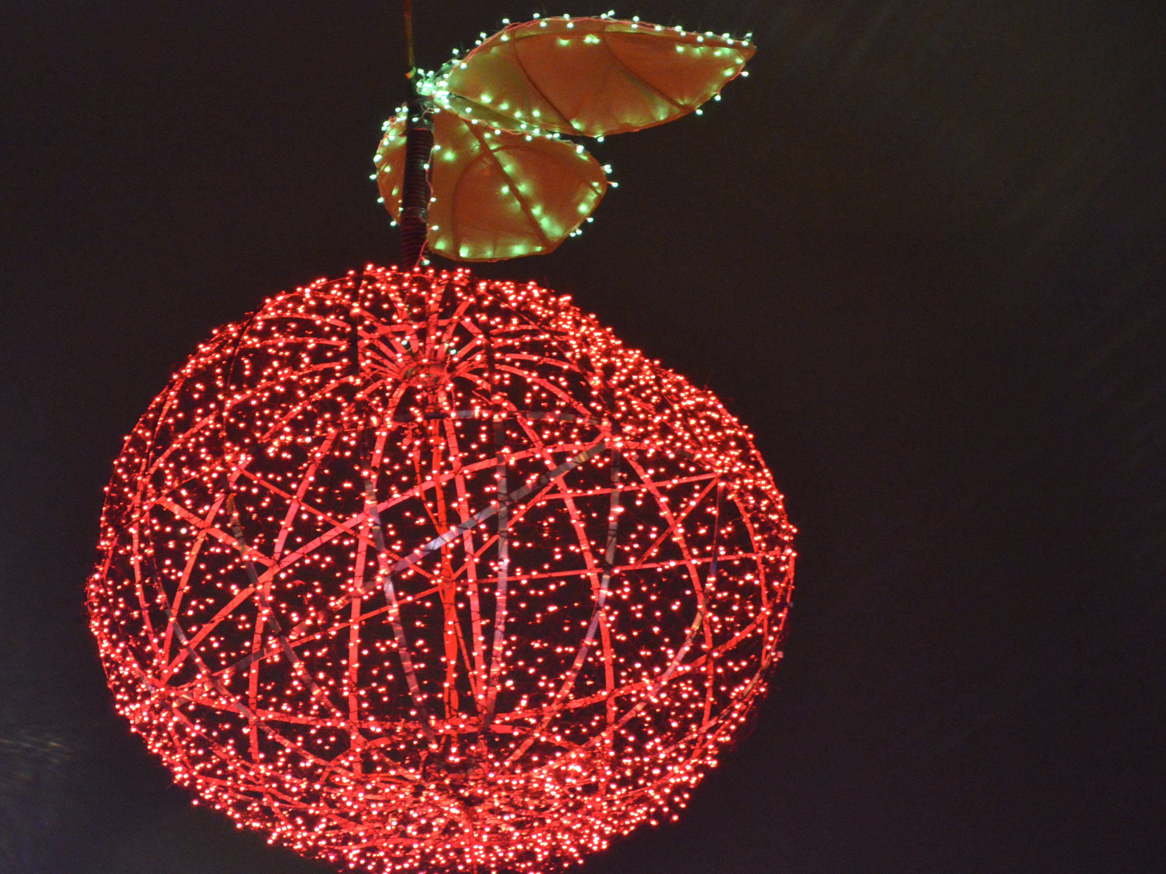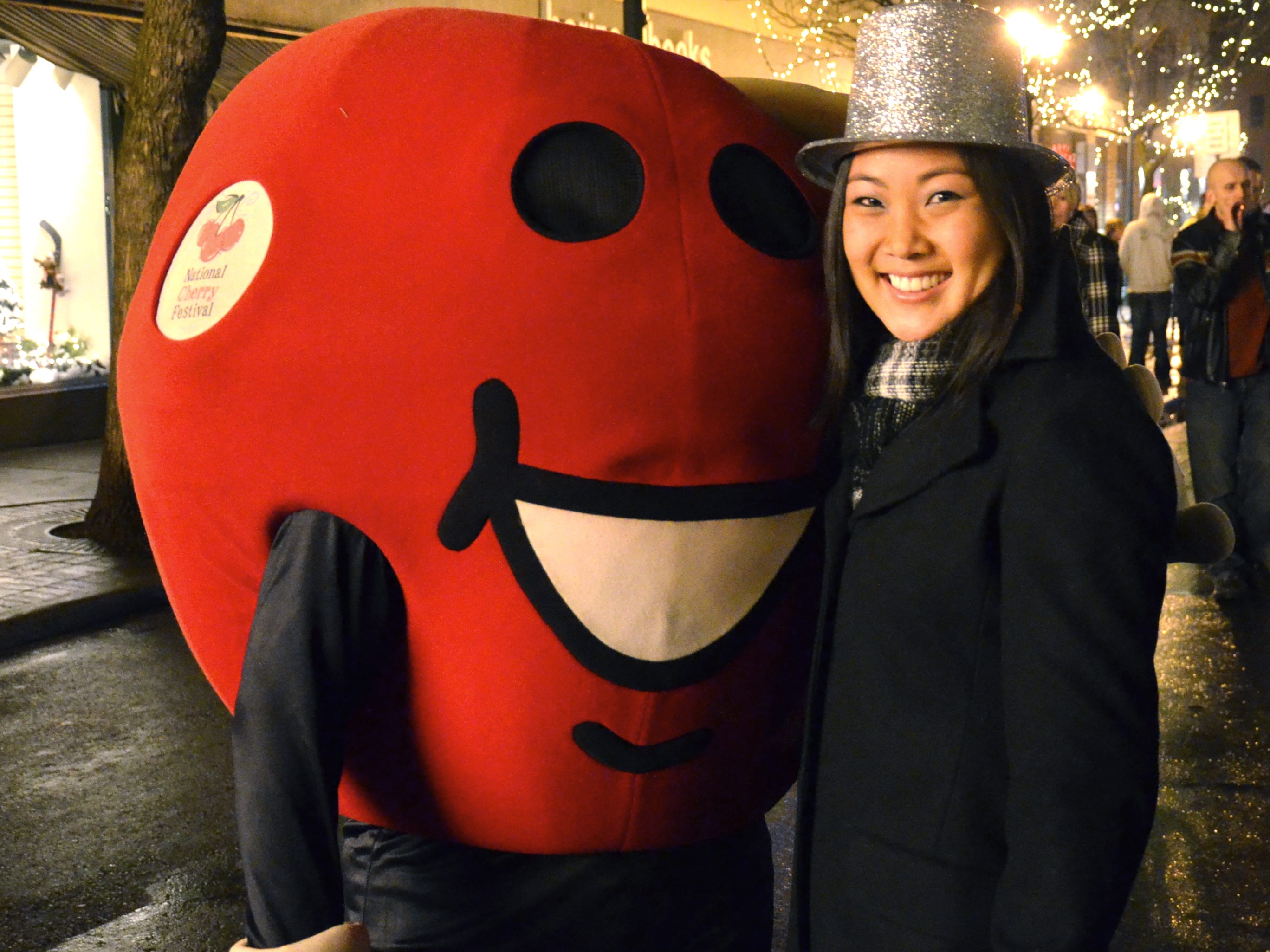 Soon, the time came to focus on the big lighted red cherry, count down from ten, kiss and hug, make silly noises and that kind of thing. The huge cherry is a wonderful symbol of the area and a big draw……. not exactly like Times Square, but fun nonetheless. Maybe more.