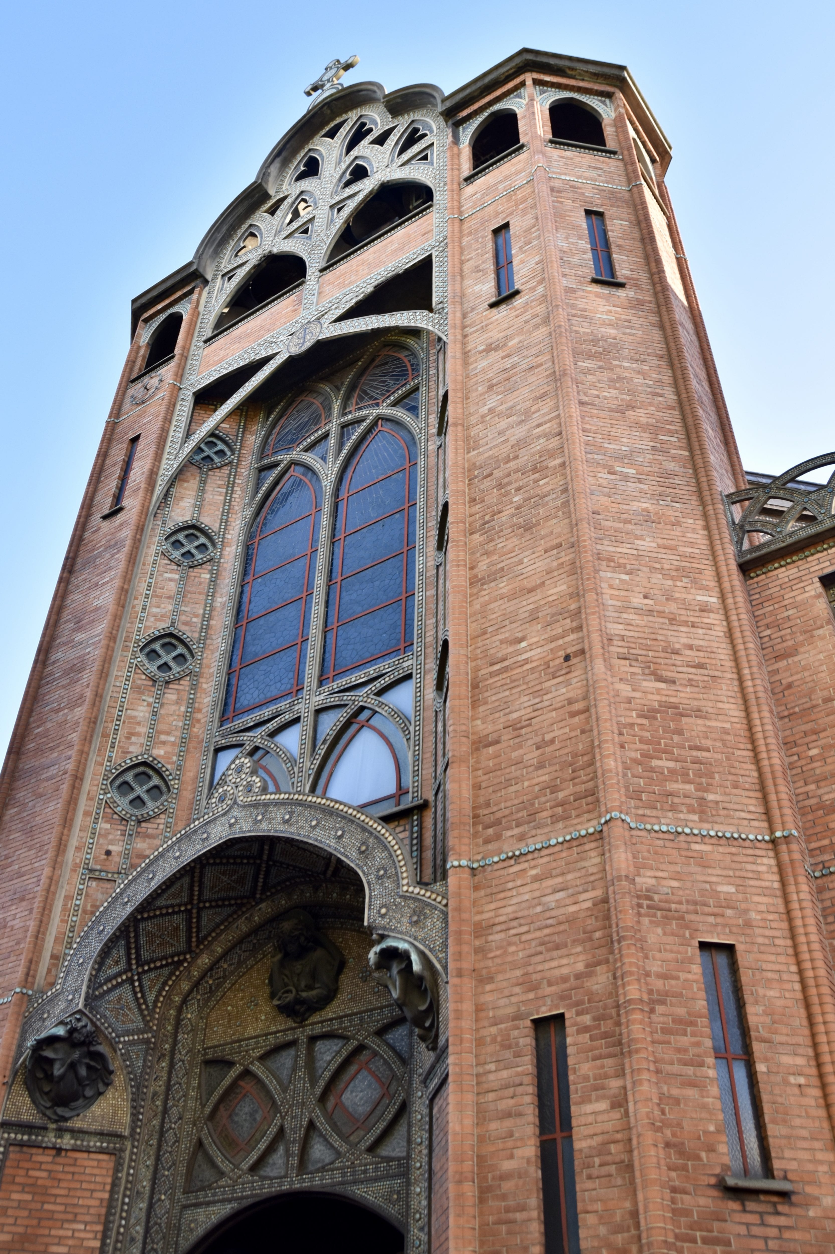 Elise Saint-Jean Evanseliste. Such unusual ornamentation. According to Wikipedia: “It is notable as the first example of reinforced concrete in church construction. Built from 1894 through 1904, the brick and ceramic tile-faced structure exhibits features of Art Nouveau design while exploiting the superior structural qualities of reinforced concrete with lightness and transparency.”