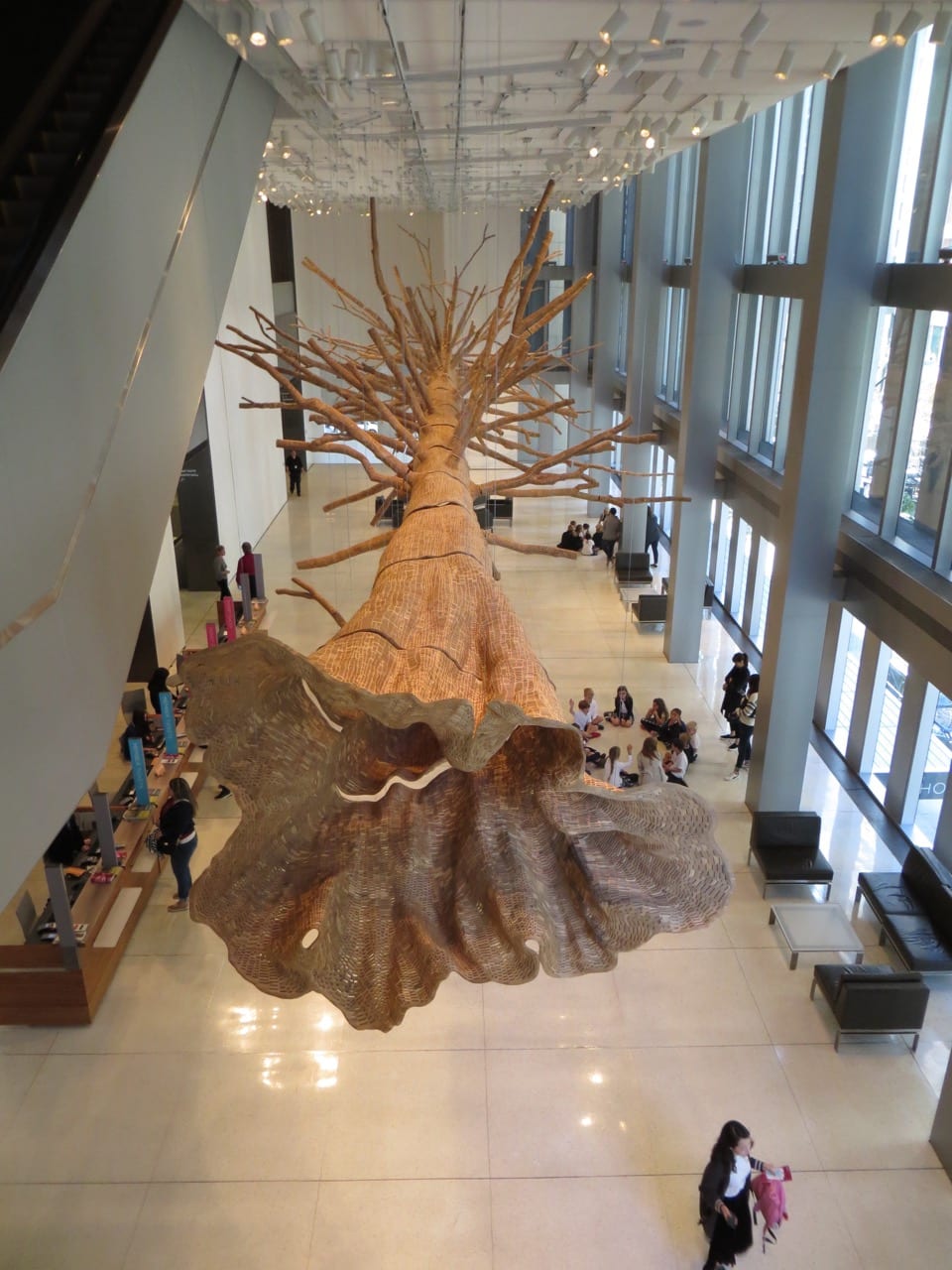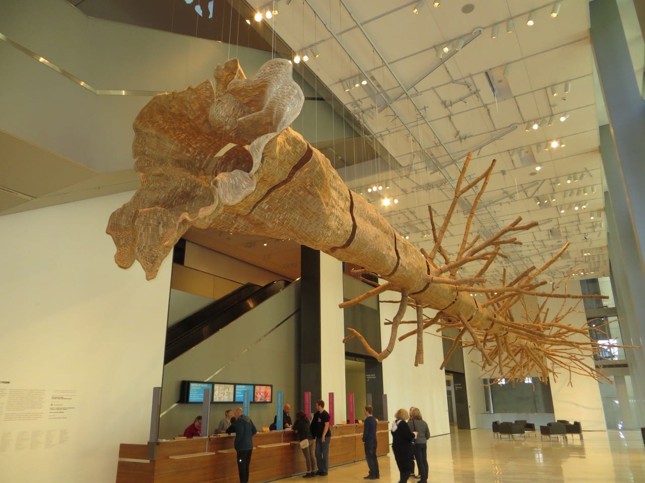 Inside the SAM, spanning the length of the lobby’s high ceiling was a stunning sculptural fabrication of a ‘real regional tree from a forest’ made from small pieces of wood in segments by individuals who were part of various construction collaboratives (now there’s a 21st century term for you). Think tree huggers, not in the political sense but in the sense of anyone who can appreciate the awesomeness of a single tree in the wild. The story is really too long to tell here yet splendid in every way.