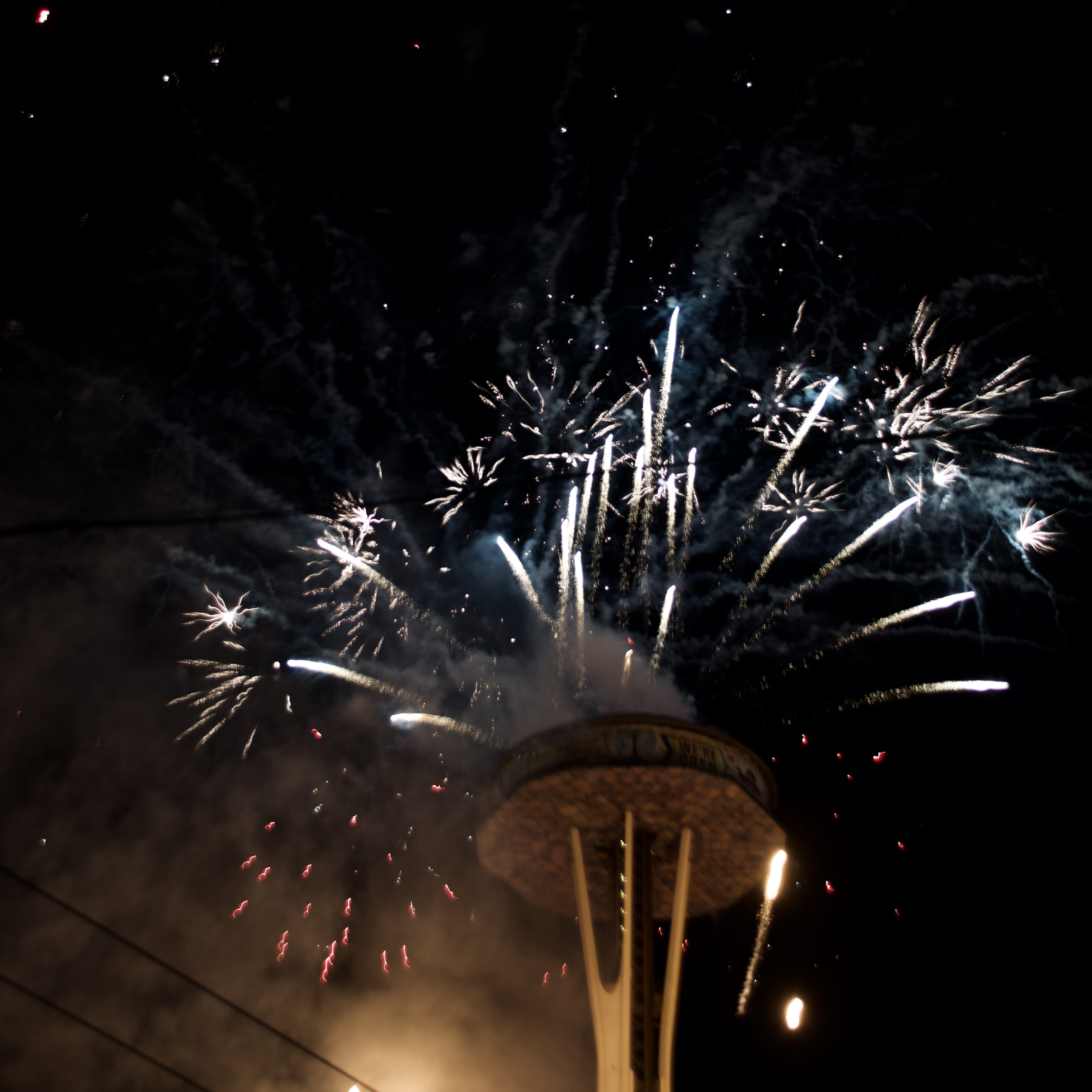 We ended our time in Seattle on New Year’s Eve so of course, we meandered toward the Seattle Center, home to the Chilhuly Museum, the Museum of Pop Culture (photos posted last week) and, of course, the famous Space Needle. The Seattle icon built for the 1962 World’s Fair with observation deck and restaurant, spouts a delightful firework show on New Year’s Eve.