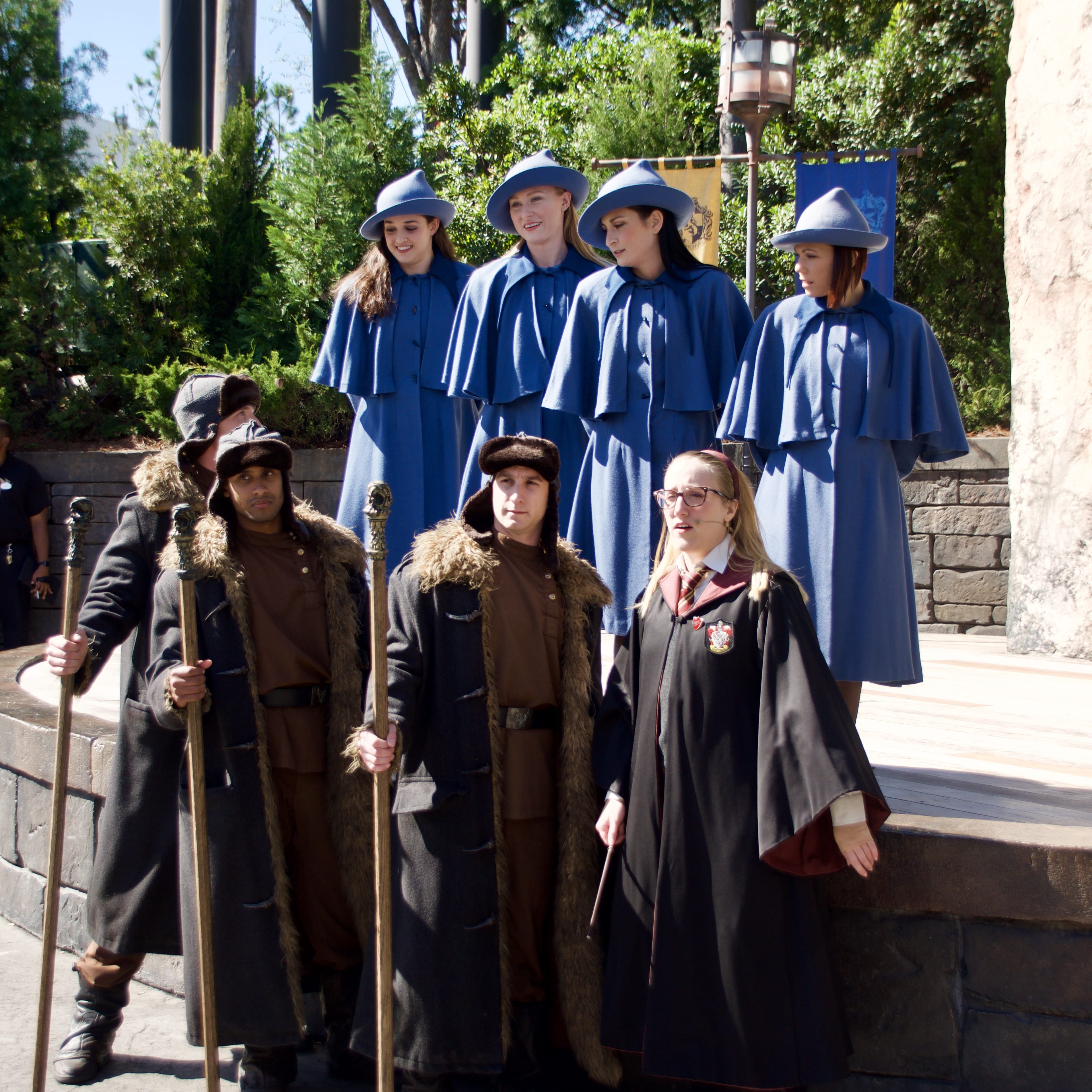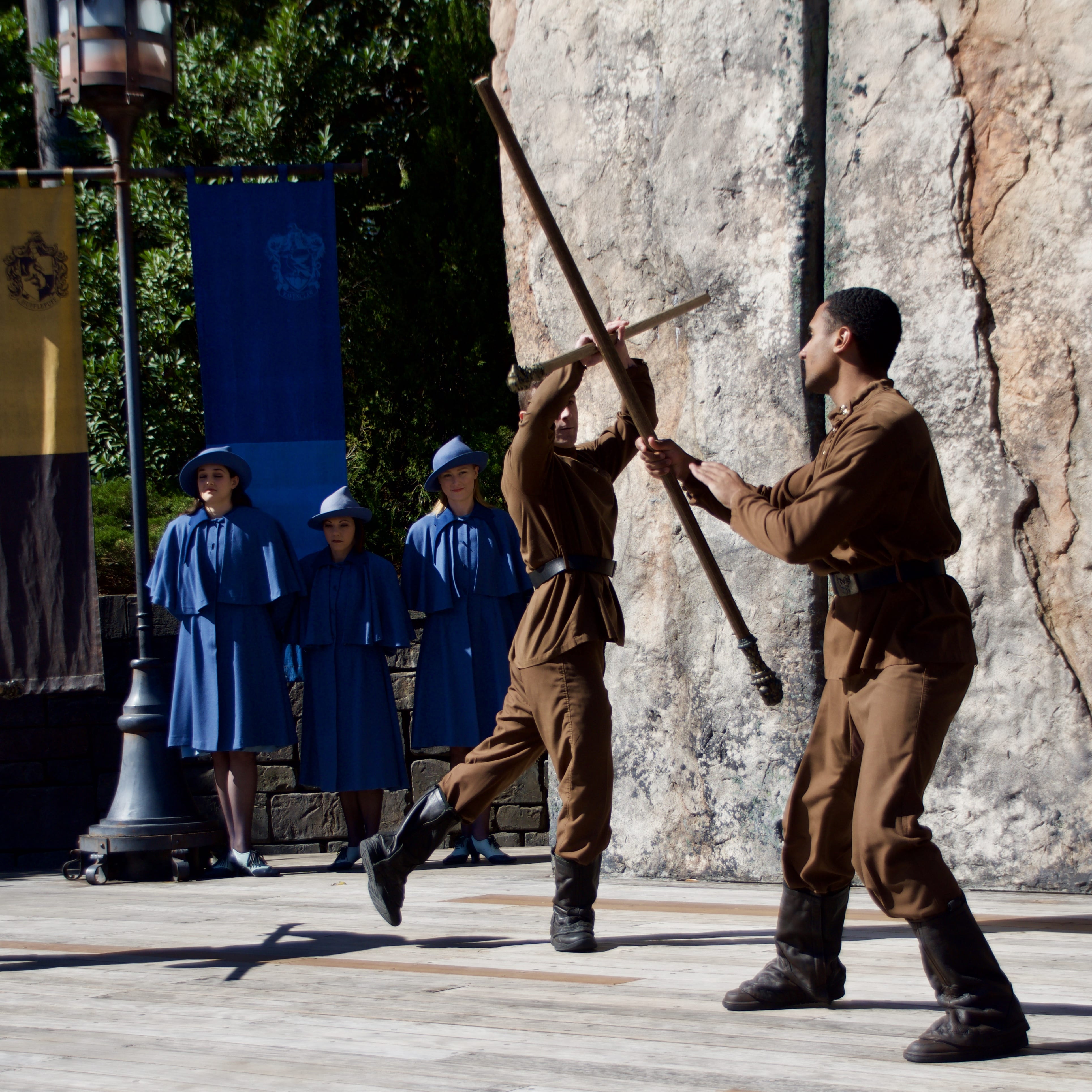While my daughter and grand daughters did another ride, I got a real kick out of the performance of the Beauxbaton and Durmstrang students in the square. If you recall, they are from other schools of Wizardry.