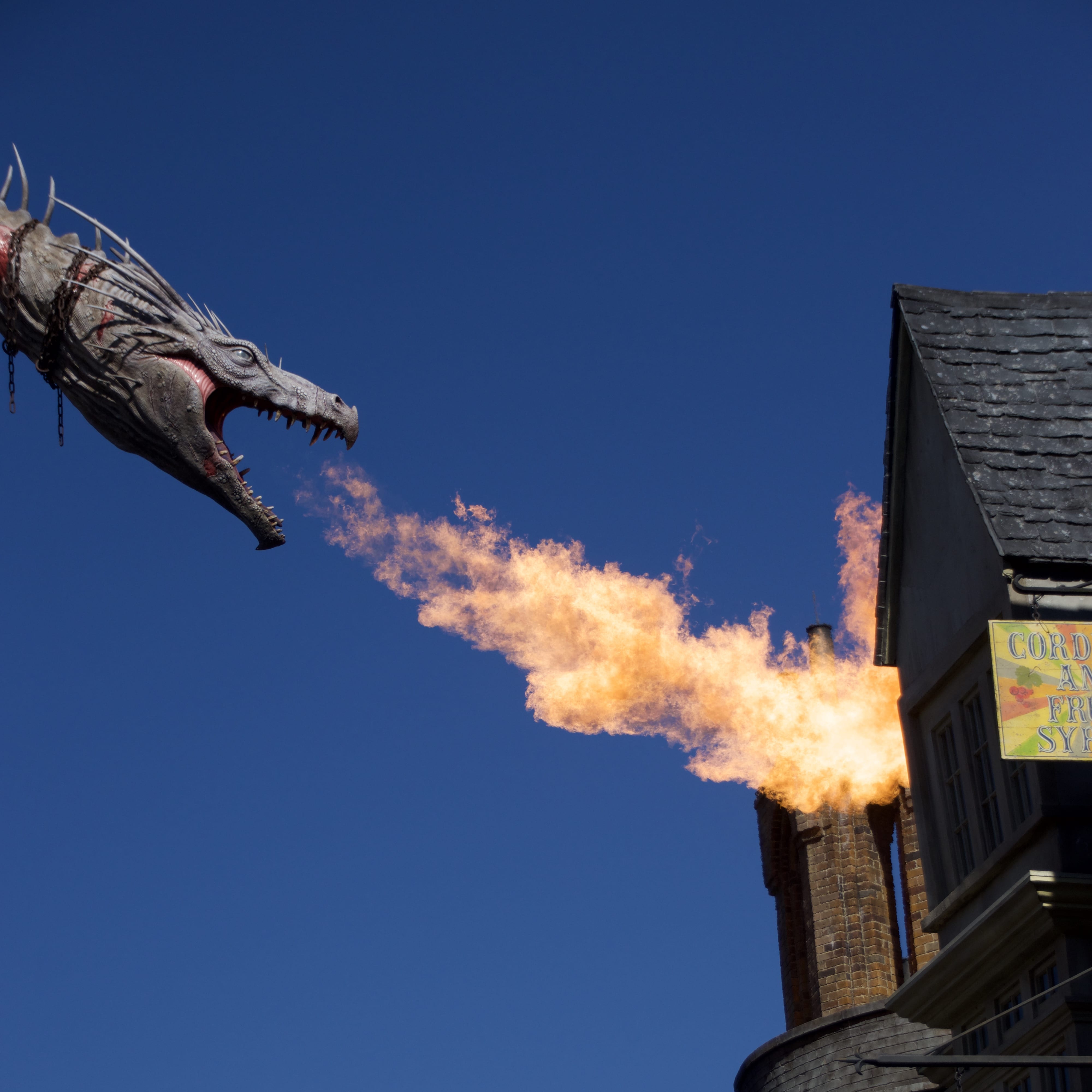 My first bit of advice is to go to Diagon Alley which is in Universal Studios. Get there before the park opens so you are at the beginning of the line and then head directly to Diagon Alley which is at the far end of the park. Don’t dawdle. Go right to Harry Potter and Escape from Gringotts ride. Be aware they don’t let you take a back pack or a purse on the ride but they do have lockers to check them. if you want small items with you, be sure to wear clothes with lots of pockets. Nope, couldn’t take my Nikon for photos but frankly it was too scary for me to concentrate on anything other than the ride.