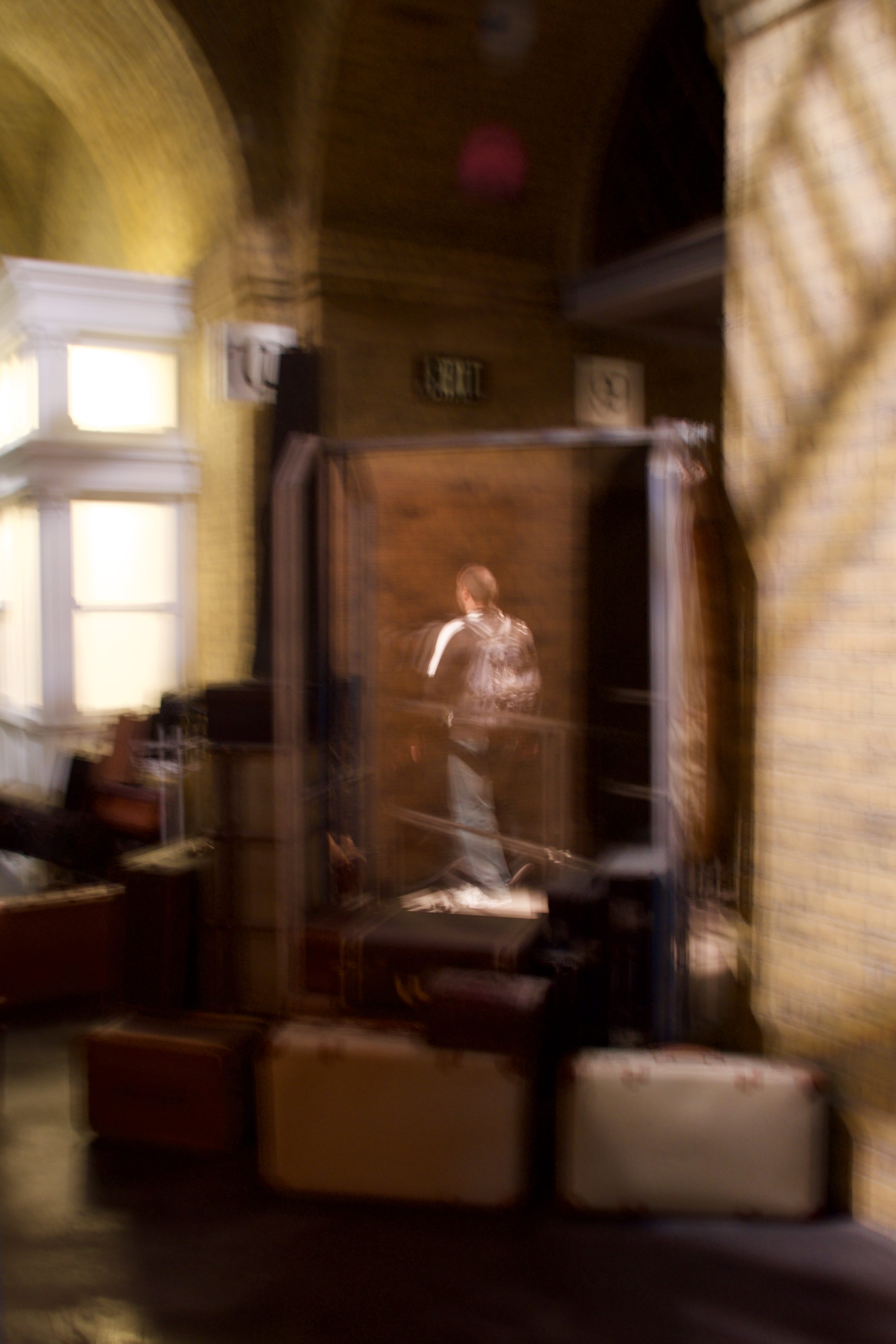 After stopping to marvel at the fire breathing dragon we then headed to the Kings Cross Train Station to ride to Hogsmeade, in the other park. If you do this, be sure to watch people go through Platform 9 3/4. If you start looking when you come up the stairs, you’ll see people seem to vanish through the brick. I tried capturing a photo but couldn’t get a good one. Needed more time and a tripod. Here’s my attempt.