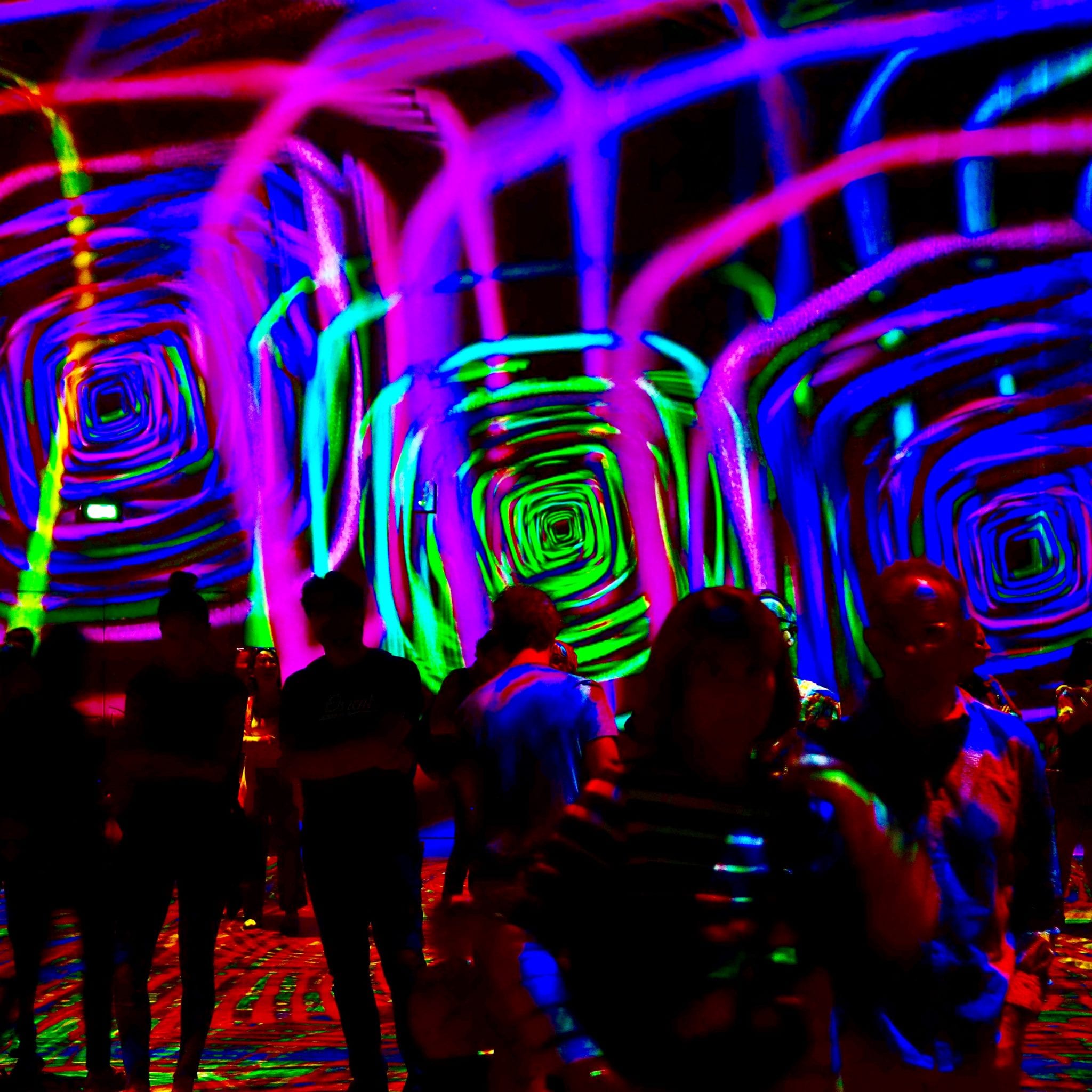 We went on a Sunday morning in September and while there were a couple hundred people in the space, all were quiet and respectful. It was almost a spiritual experience while the music surrounded us and the art ebbed and flowed on the walls and floors of the cavernous space.