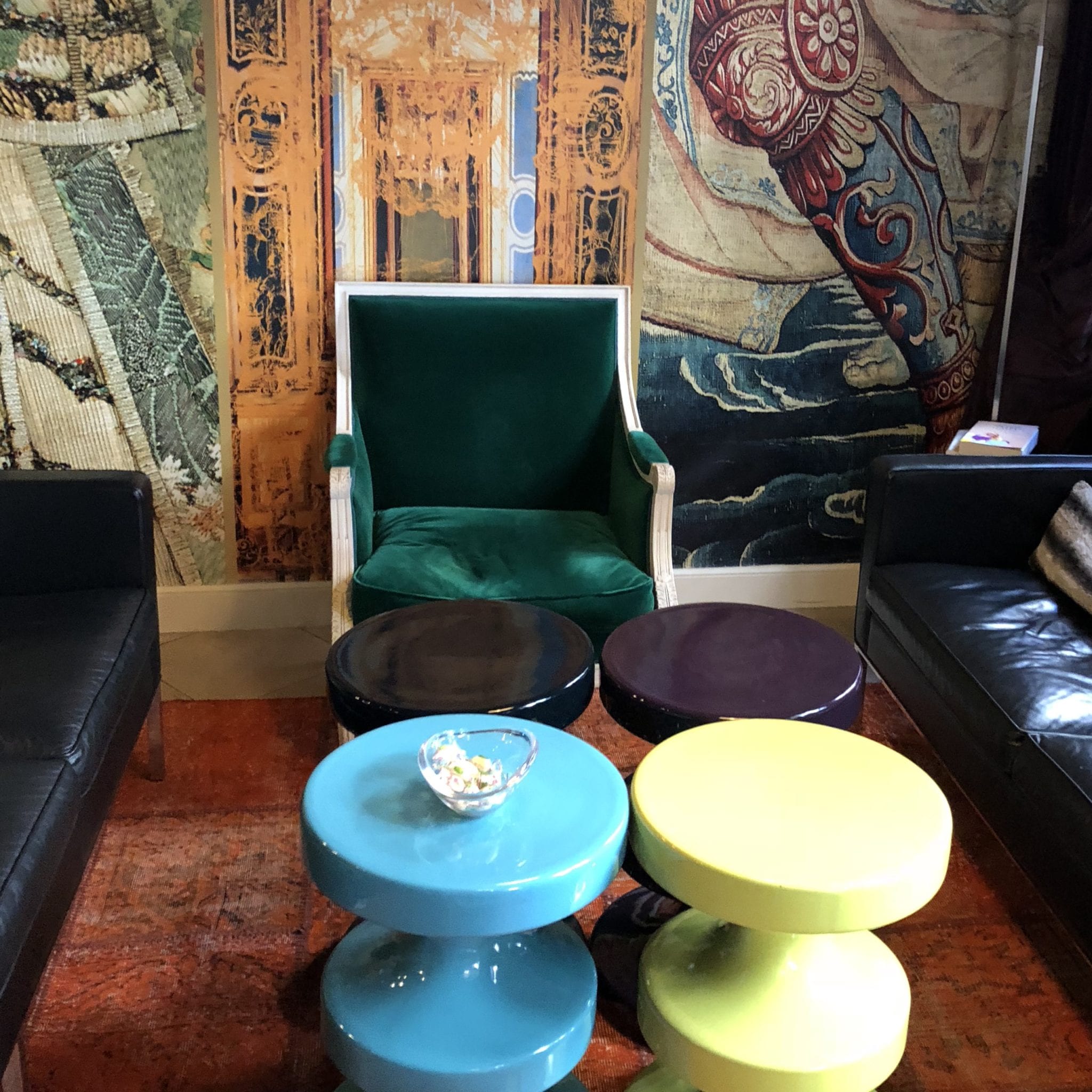 But before we hit the streets, let me show you a few scenes from one of the most colorful hotels I’ve ever stayed in. Often we rent an apartment in Paris, but since this trip was only three days, I booked a hotel on the Right Bank in the Marais. Here are some shots of the colorful spaces.