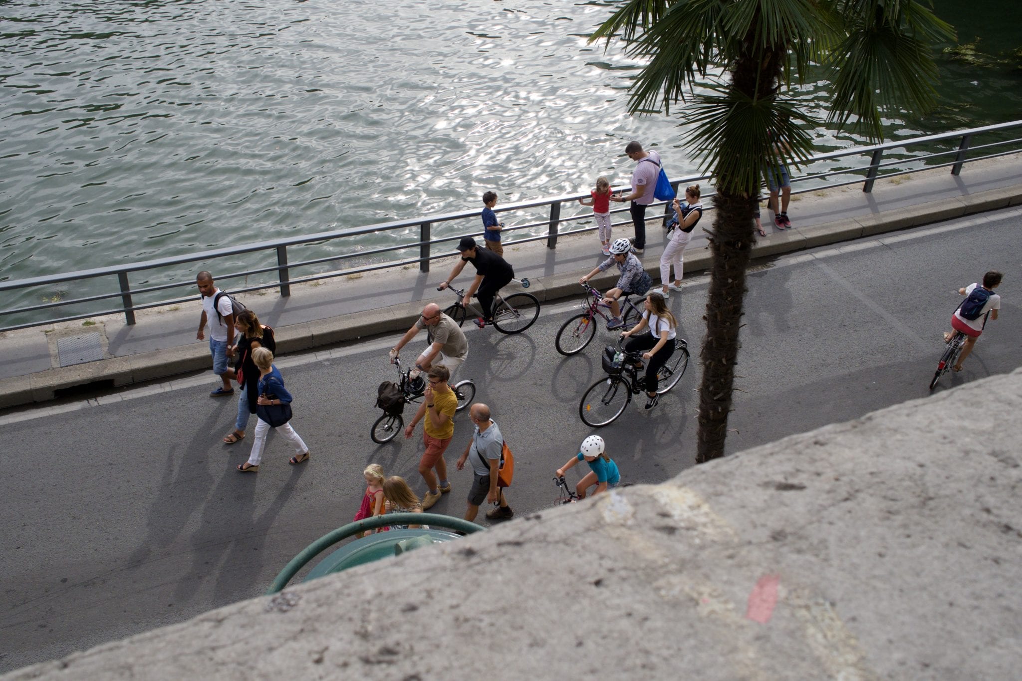 On the Sunday that we were in Paris, traffic was banned from 11 am to 6 pm. People came out on foot and bikes in droves. Enjoy a few images of what this looked like.