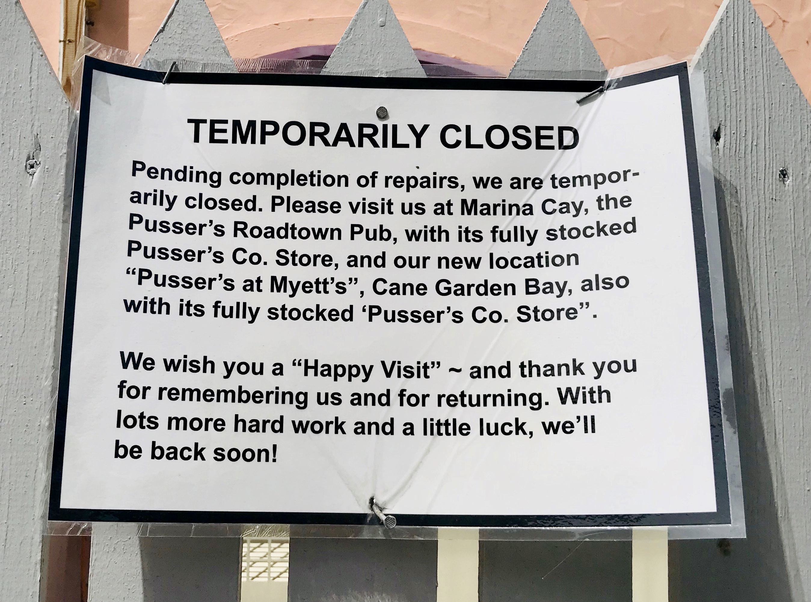 But we did see disturbing damage. Some of our favorite spots to tie up, shop, eat and enjoy are barely functioning. Soper’s Hole is one—in the past a thriving spot for boaters—now with only one coffee shop open. Other businesses are coming but apparently slowly.