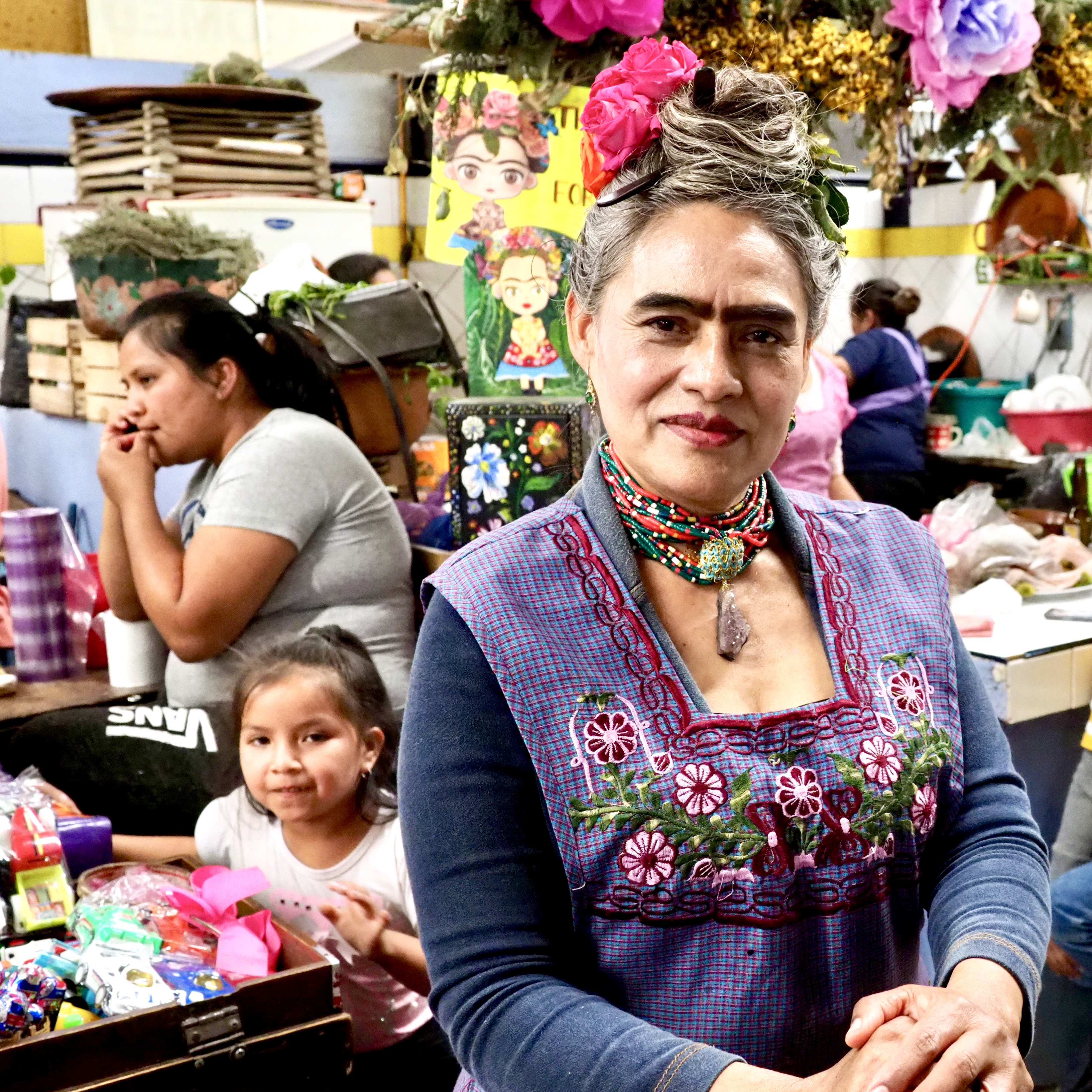 The Markets. Vibrant and lively, the markets are central to life in Oaxaca. Whether you are shopping for food, plants or just looking, you need to go to the markets. I loved seeing the baskets of fried grasshoppers, cute little cafe’s like the one dedicated to Frida Kahlo and marvelous arrangements of food.