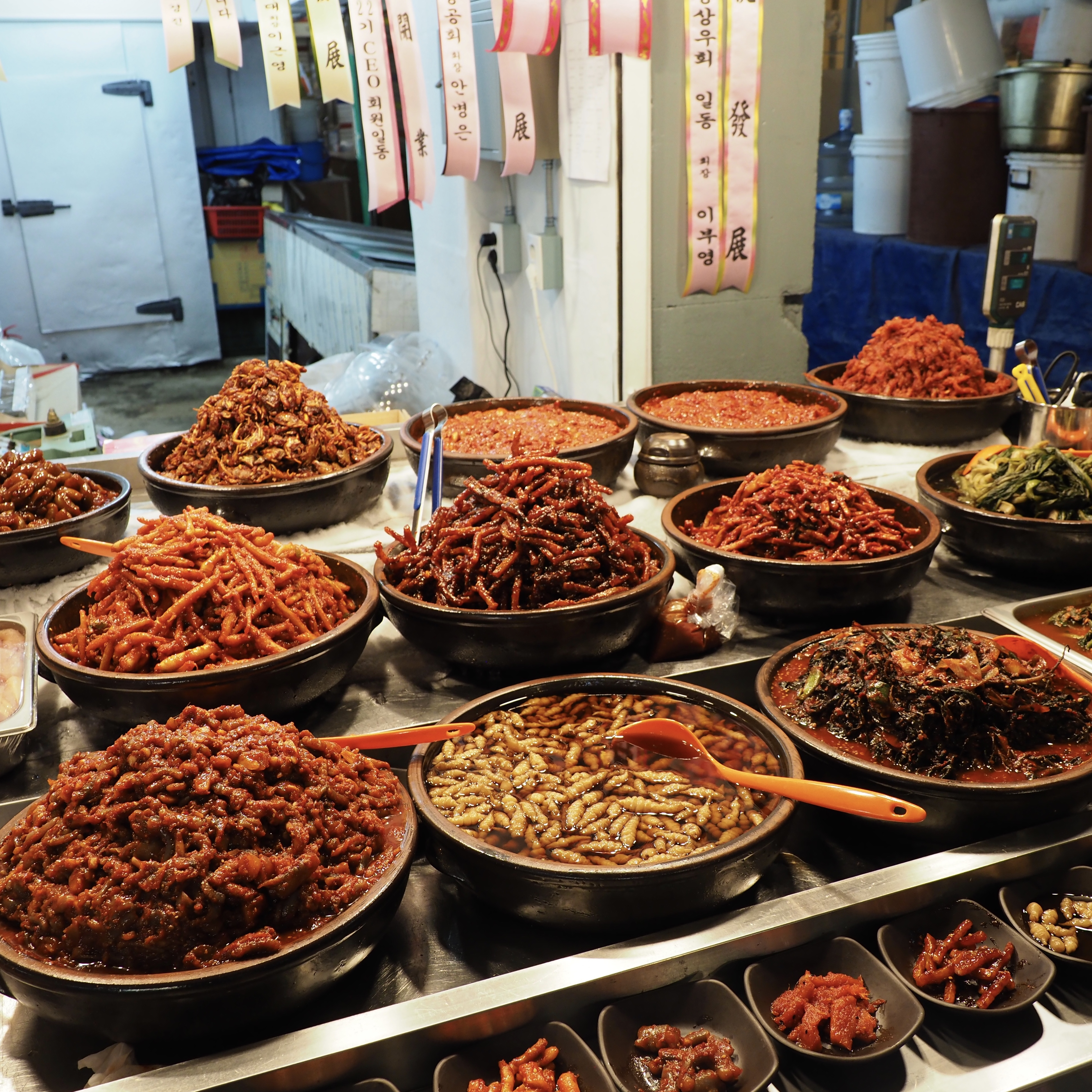 Then on to one of my favorite things to do in a city—visit the market. In Seoul the main market is Gwangjang Market. It has two huge arcades that intersect with lots of food and fabric. It was a great spot for lunch and people watching.