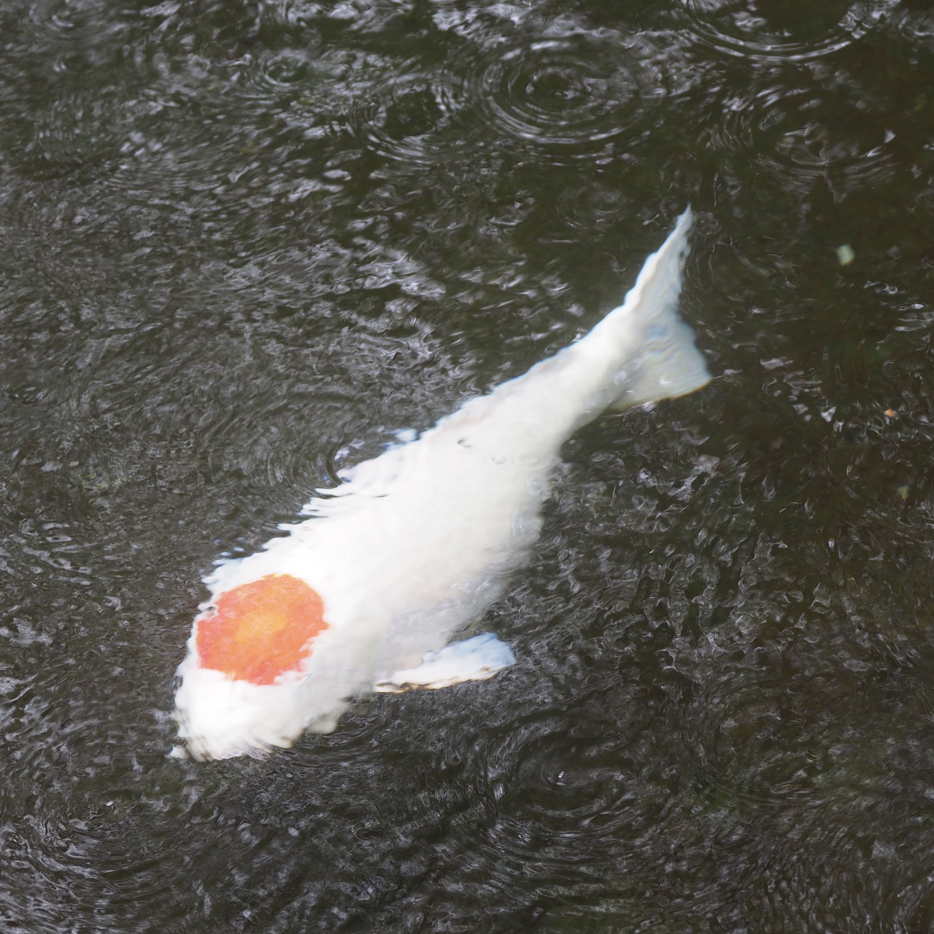 Ponds with carp are often found in gardens. Carp are considered to be “living flowers” and are very popular in Japan. They can live up to 50 years. In Japanese culture, they are a symbol of strength and perseverance. It was raining when I took these pictures.