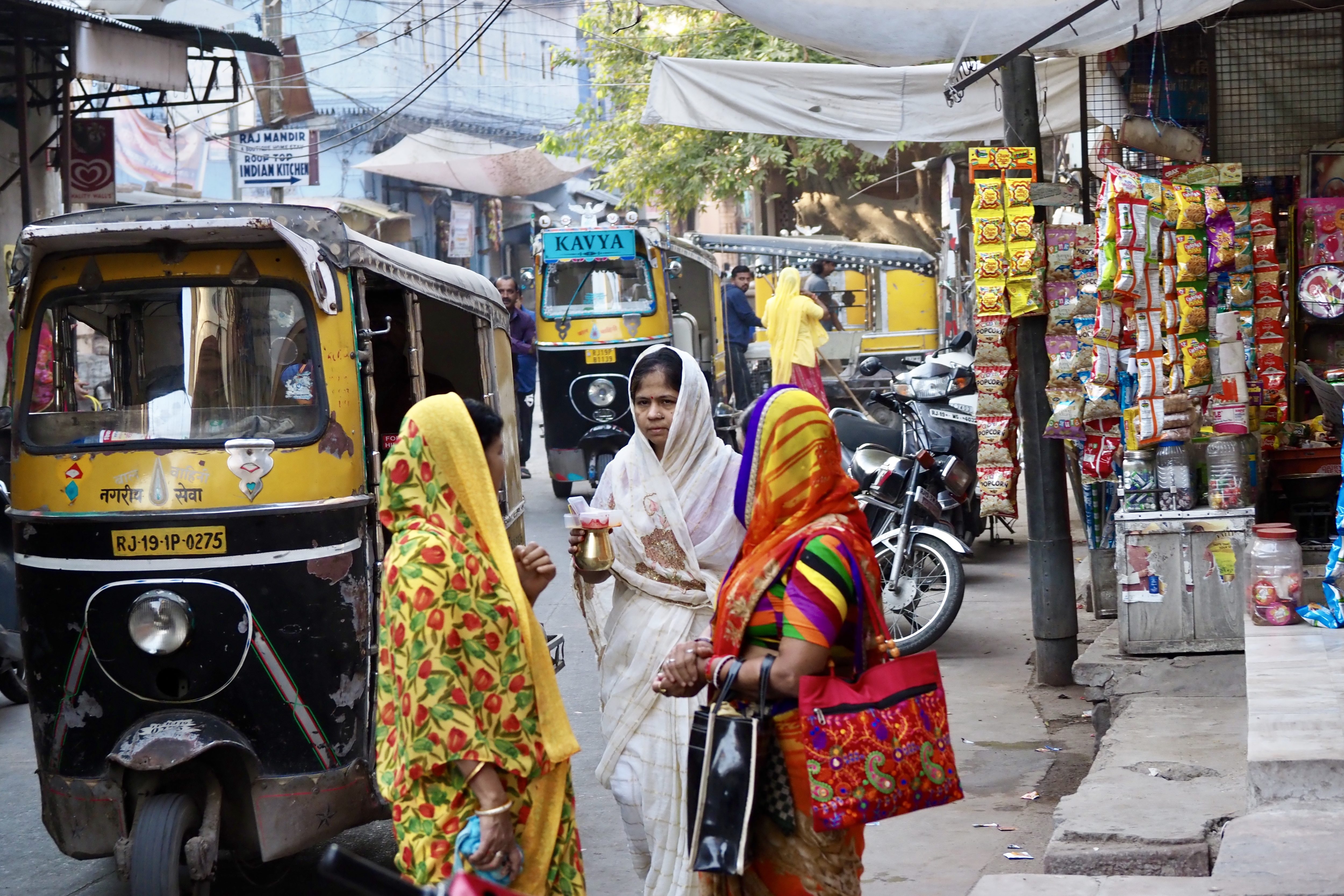 The people we encountered were friendly and for the most part happy to have us take their pictures. Oh, how I wished I could have chatted with these ladies who gathered outside a temple. I would love to have learned about their lives. Maybe sometime I’ll go back to visit what one blogger called, “the trendy part of Jodhpur” but I’m happy with my view of this city. In case you are wondering, riding pants called jodhpurs are named after this city.