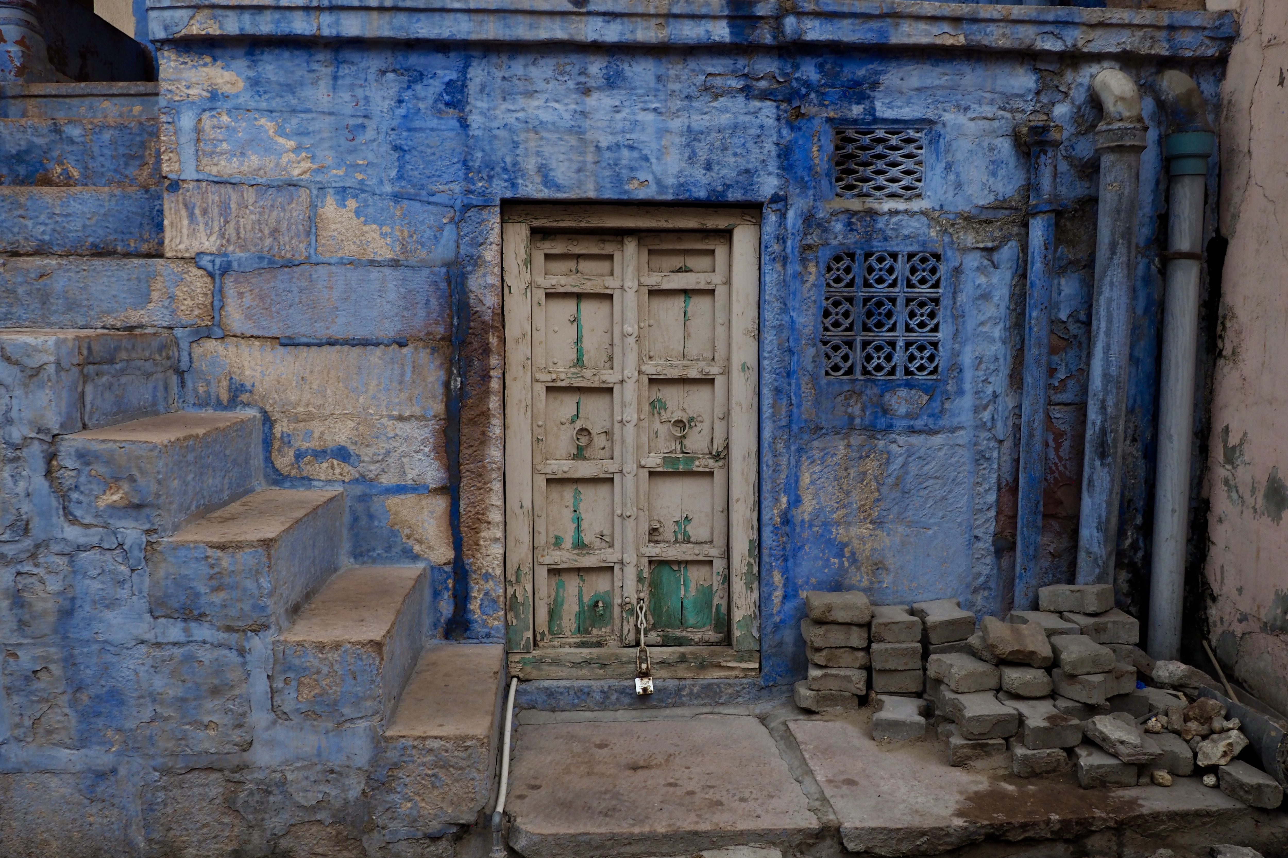 Yep, it is blue. The reasons for the color range from it is the color of the Brahim’s who are the highest class in India to the fact that the color blue repells Mosquitos. The color is thought to keep buildings cool. Today, my guess is it is blue of inertia, like why change?…….and it draws tourists.