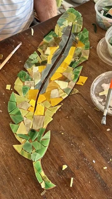 We rented an oceanside villa that came with a staff and cook, which is quite common in Mexico. Our daughter, who had been there five times before,arranged for surfing lessons, deep sea fishing, and a mosaic class. My husband and I were happy to take photos of our own family surfers, the fishing expedition resulted in ceviche and fish tacos for dinner, and the mosaic class produceda reasonable facsimile of a leaf, a joint husband and wife project of which weare unreasonably proud.